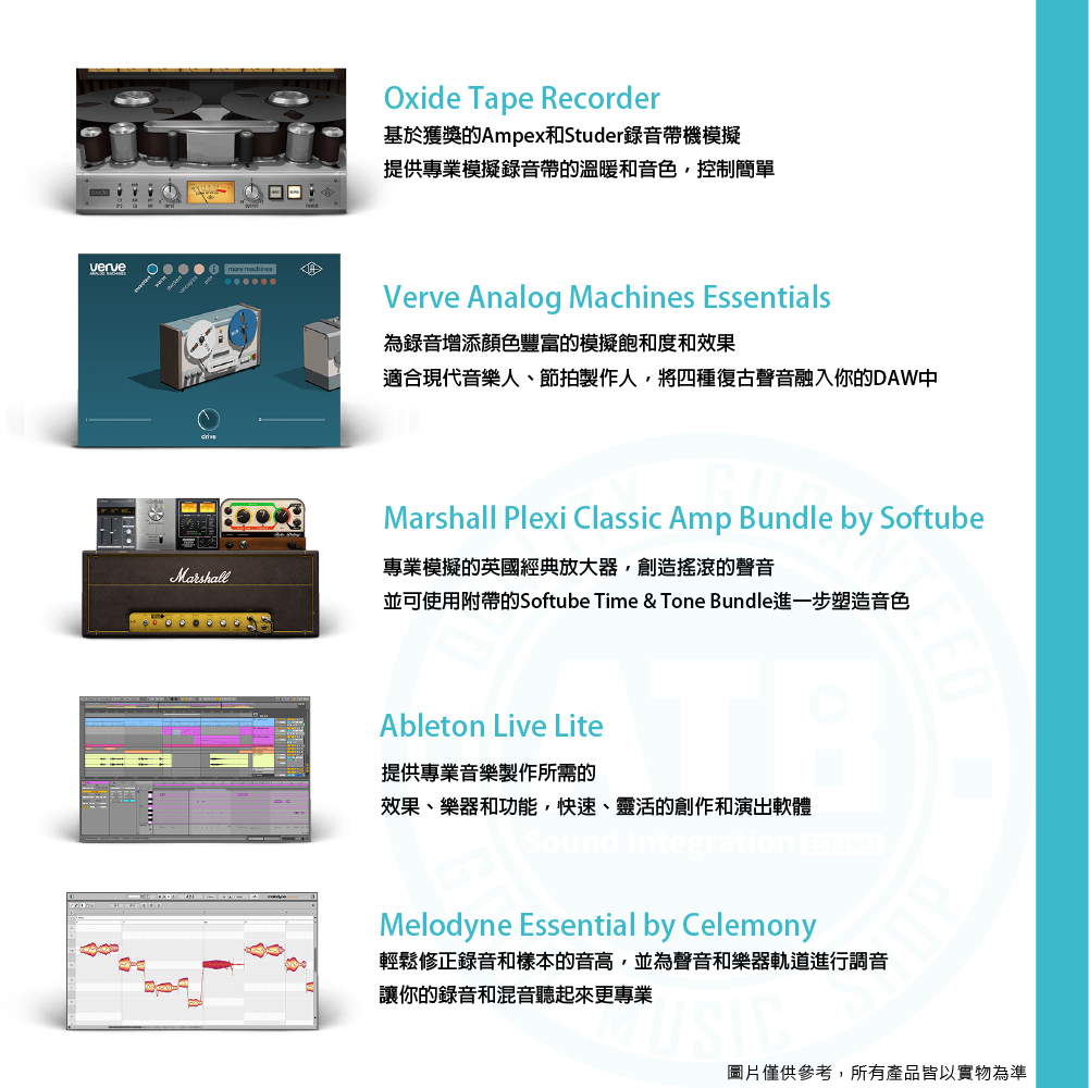 ◆附贈多種軟體包含 Ableton, Melodyne, Virtual Drummer等等...