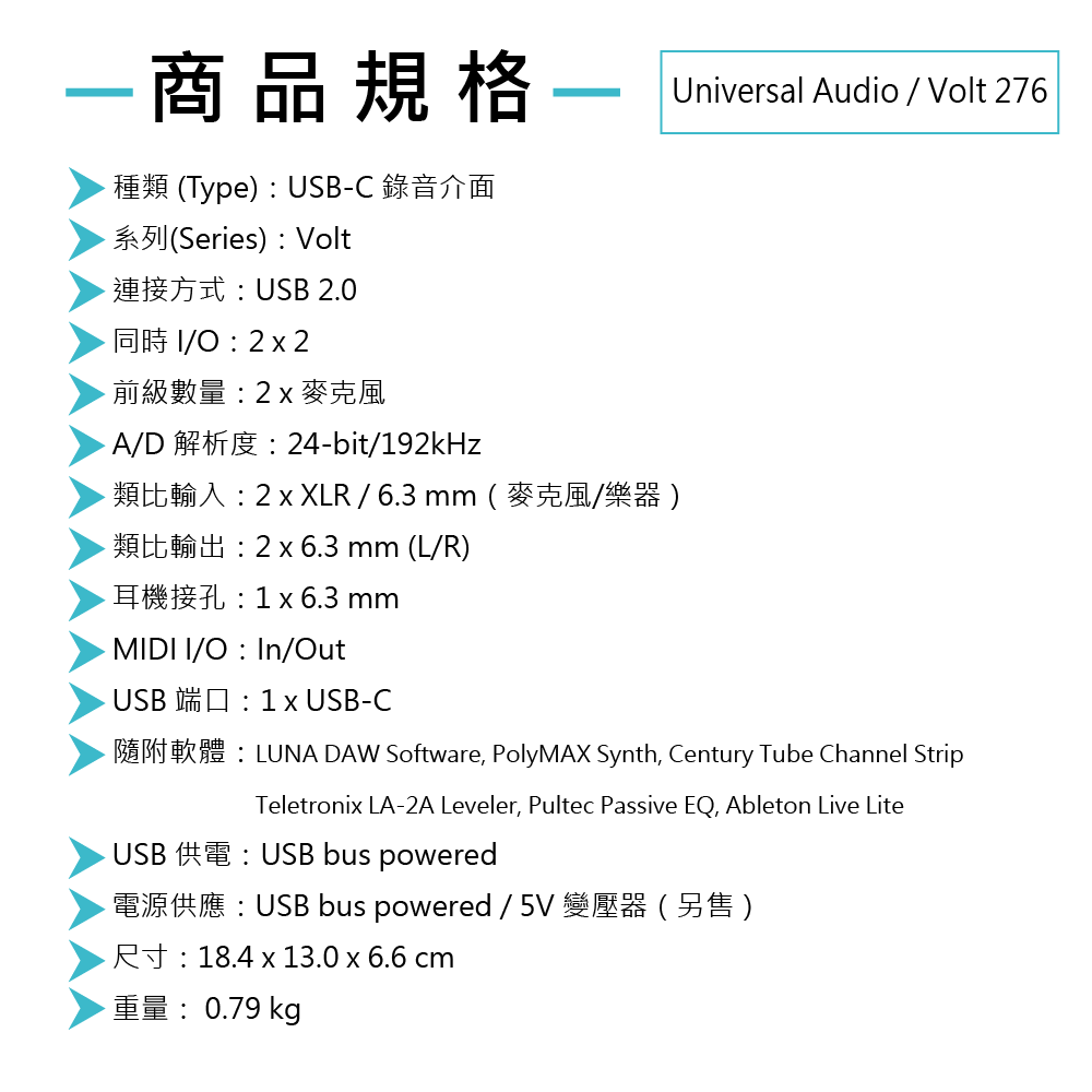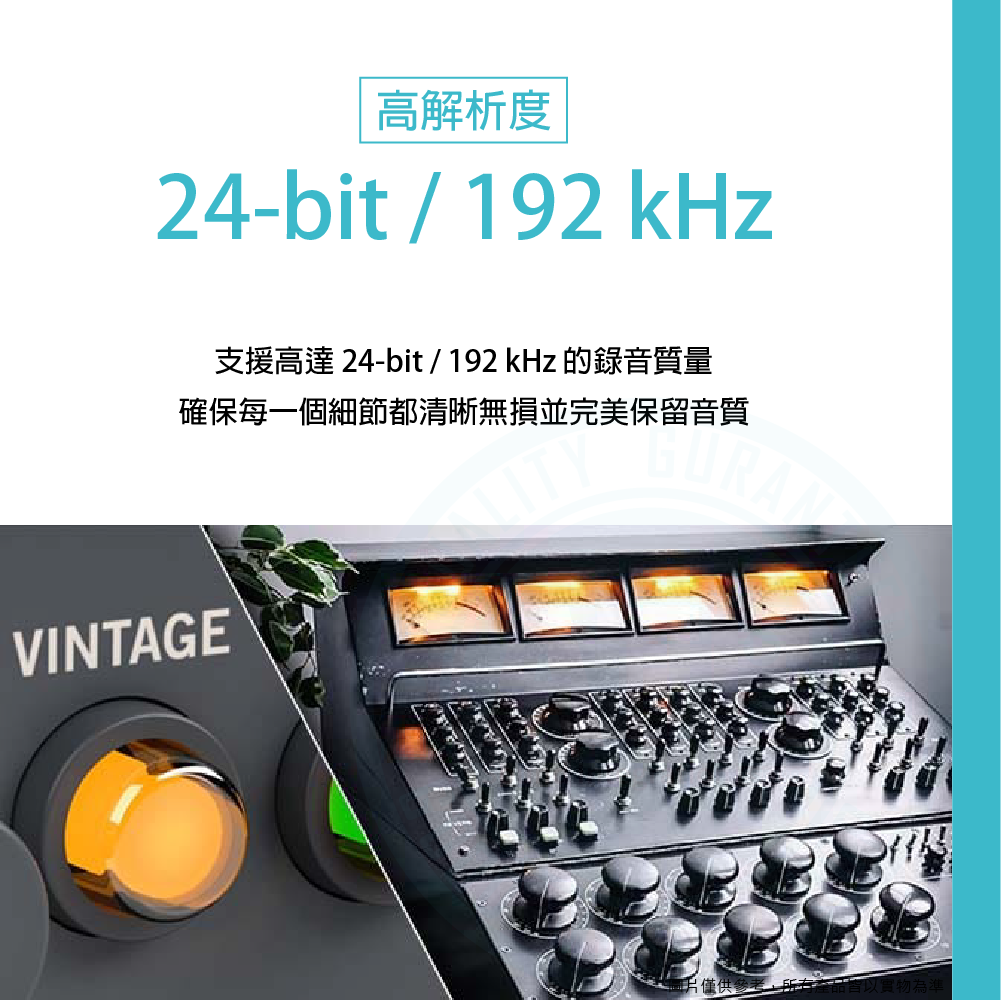 ◆提供 24-bit/192kHz 的音質,適合專業錄音需求