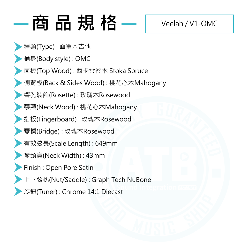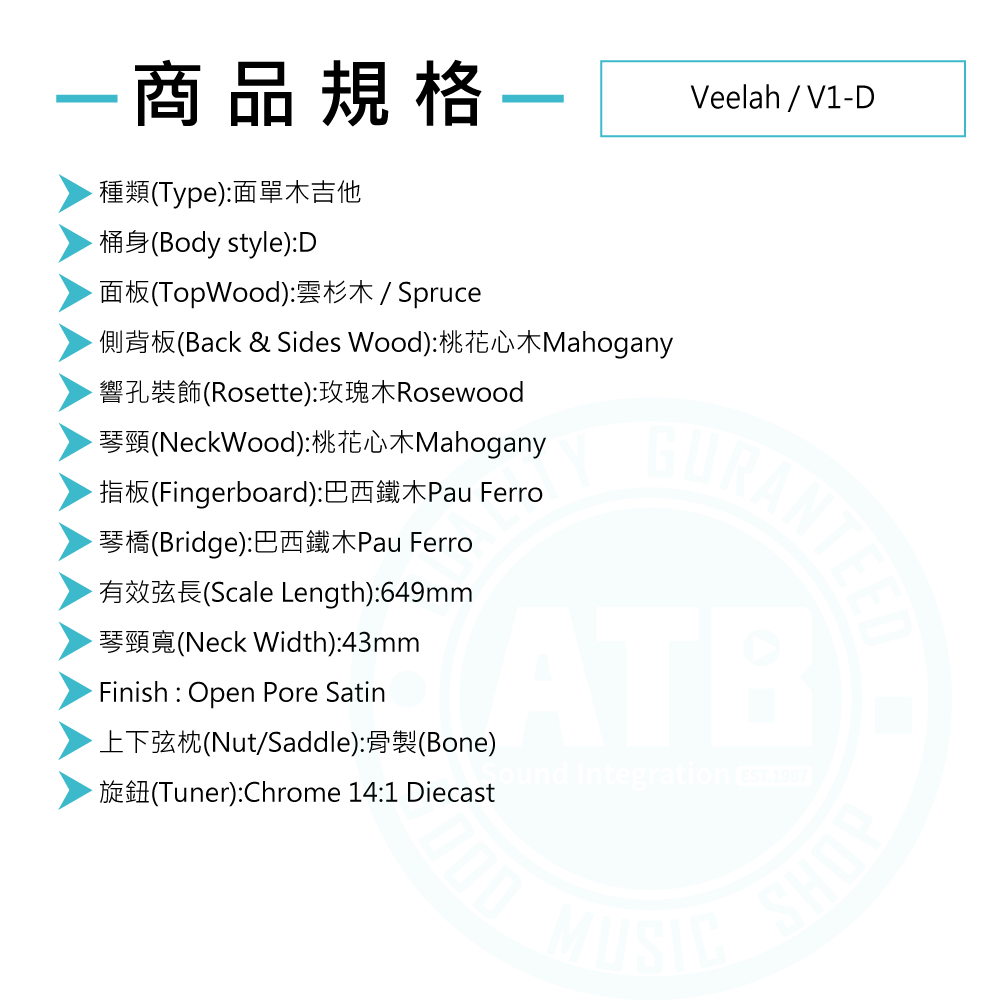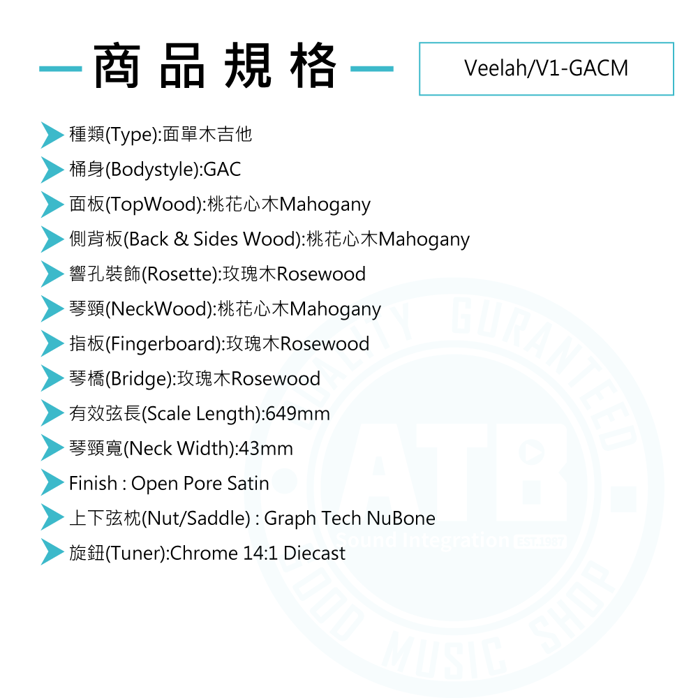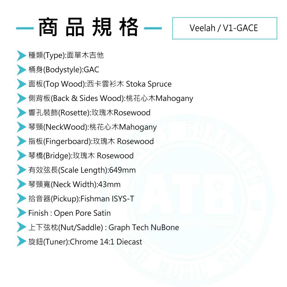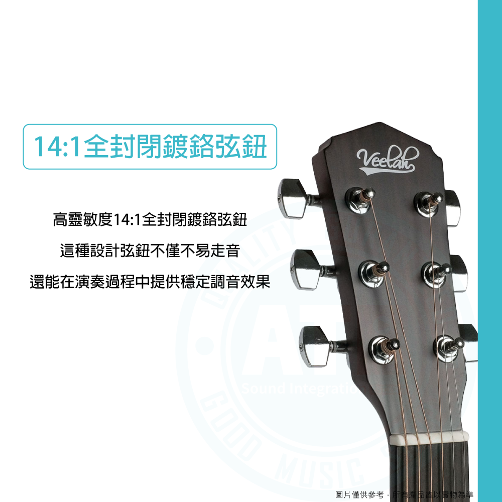 ◆高靈敏度的14:1全封閉鍍鉻弦鈕,確保穩定調音