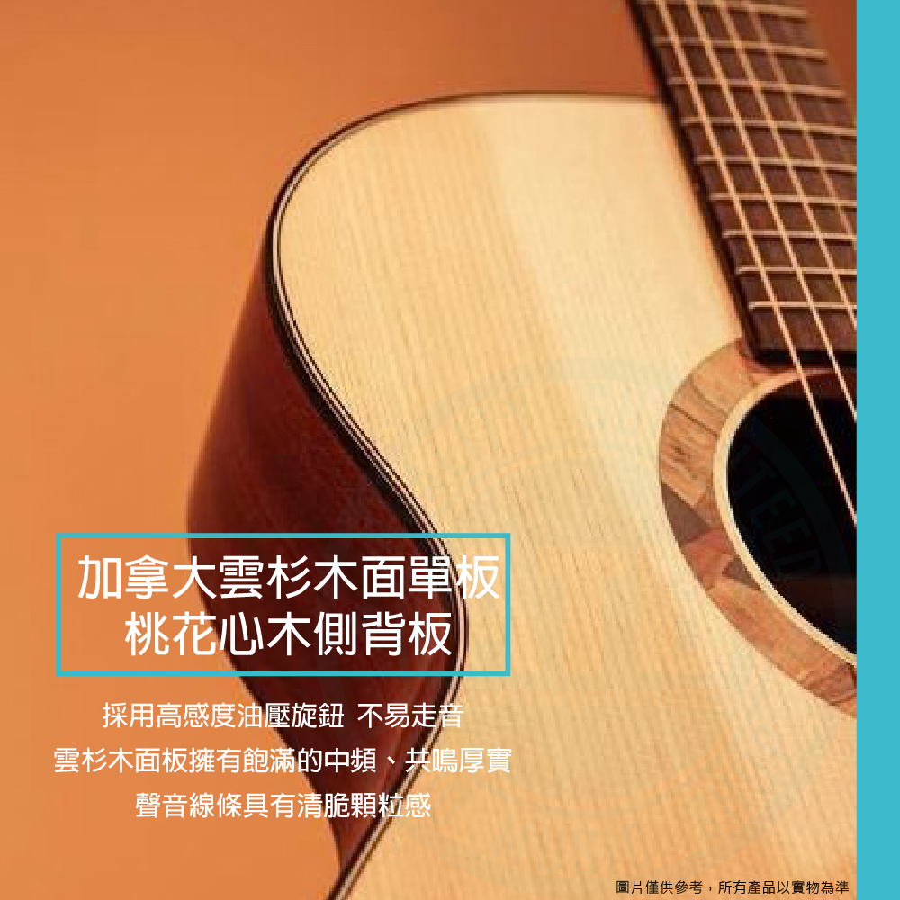 ◆加拿大雲杉木面單板,聲音線條具有清脆顆粒感