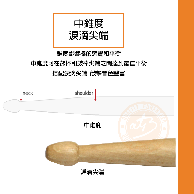 ◆中錐度(Shoulder),讓鼓棒和鼓棒尖端之間達到最佳平衡