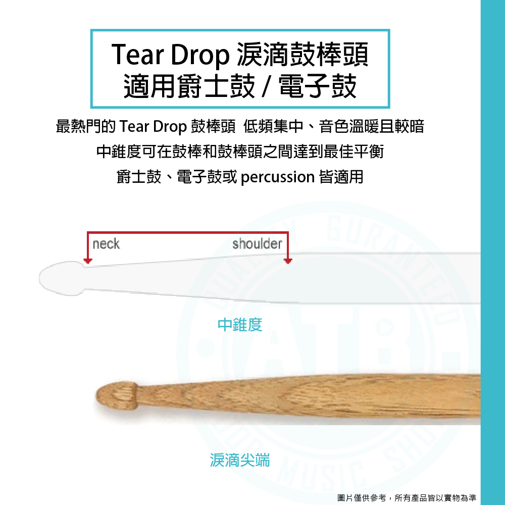 ◆ Tear Drop 鼓棒頭低頻集中、音色溫暖且較暗