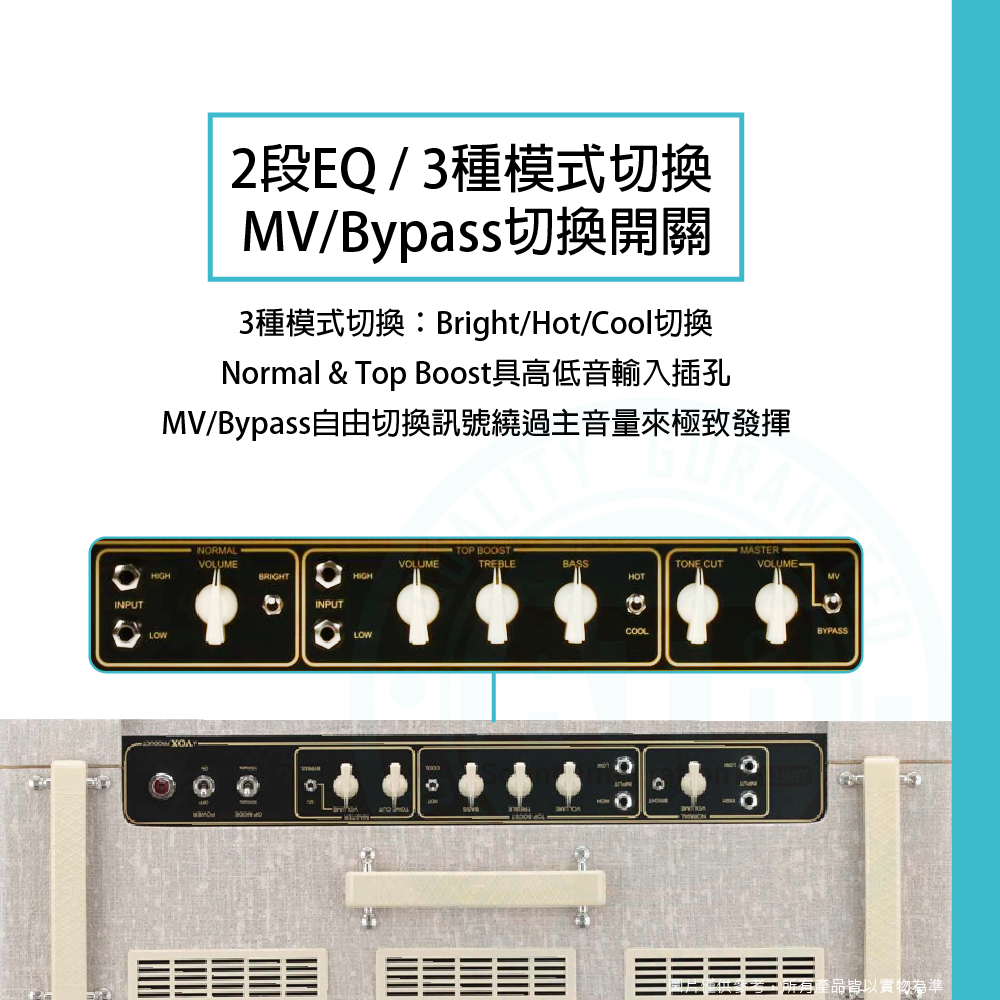 ◆擁有2段EQ、Bright/Hot/Cool 3種模式切換、MV/Bypass切換、支援腳踏開關
