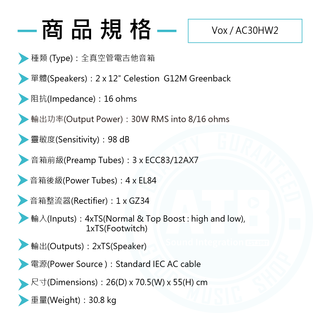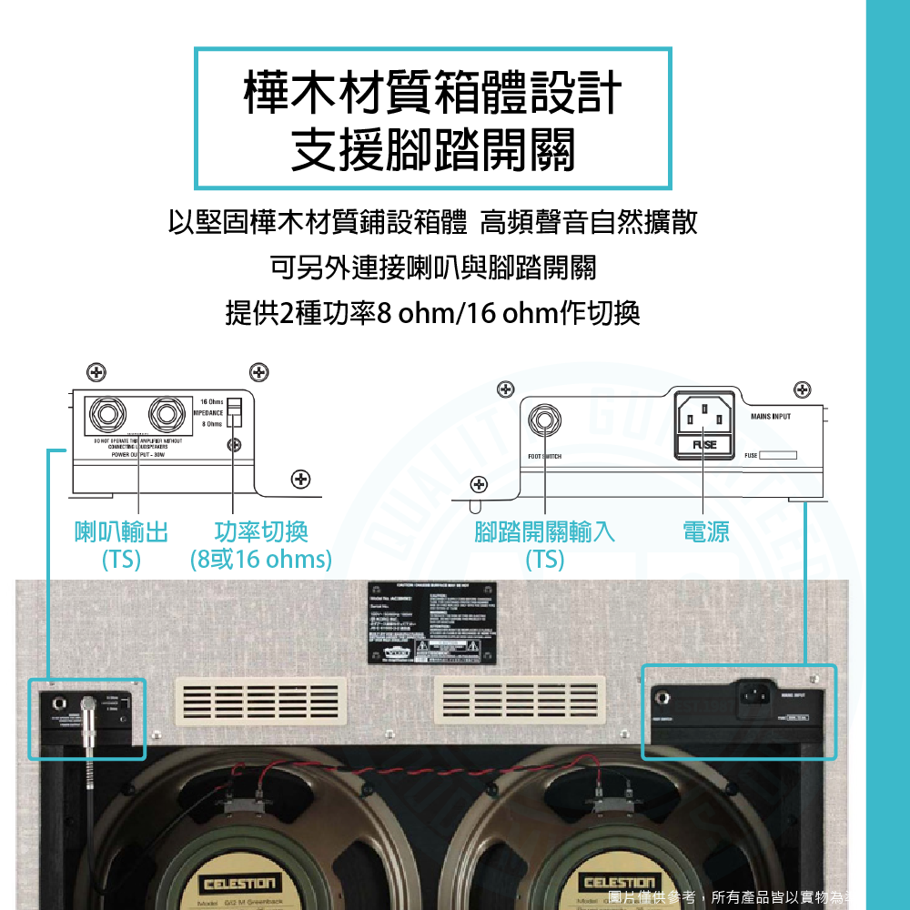 ◆30W全真空管電吉他音箱,搭載 2x12吋Celestion G12M Greenback單體