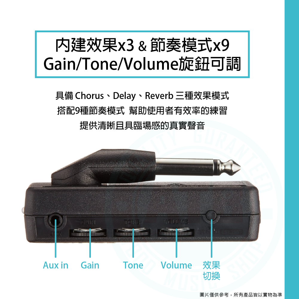 ◆ 內建效果x3、節奏模式x9、Gain/Tone/Volume旋鈕可調