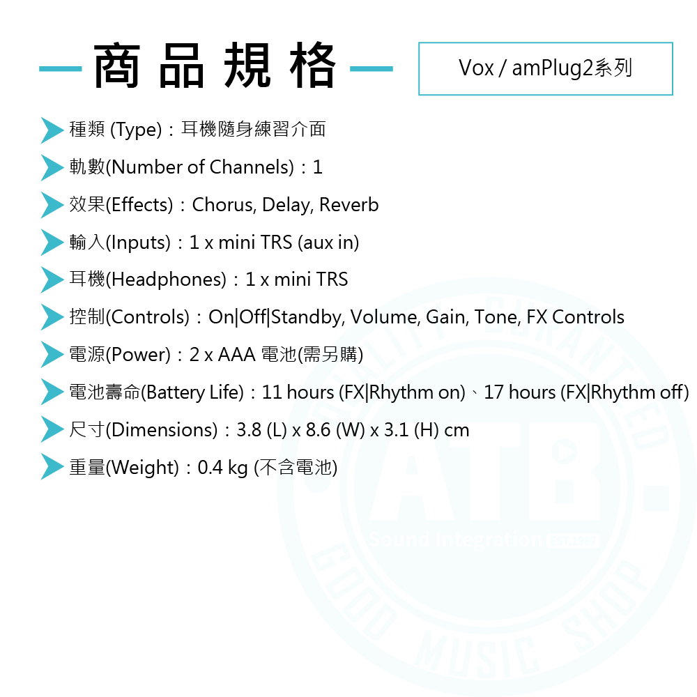 ◆ 英國品牌 Vox,模擬各式獨特音色(共8款)