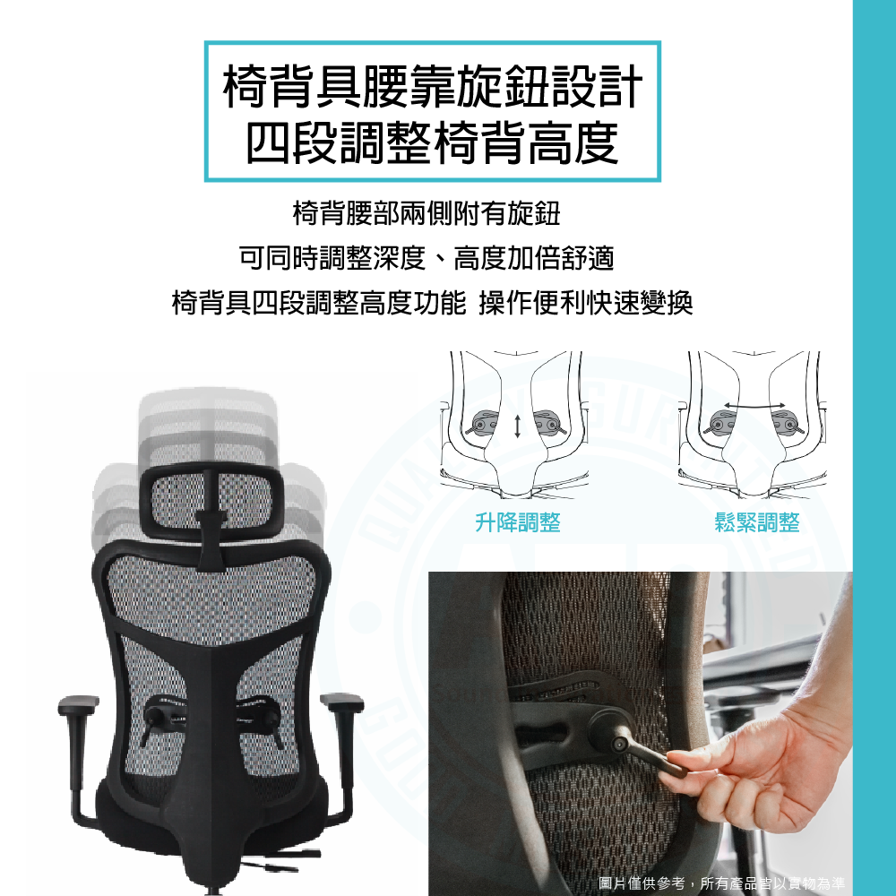 ◆椅背腰靠旋鈕設計可調升降、鬆緊