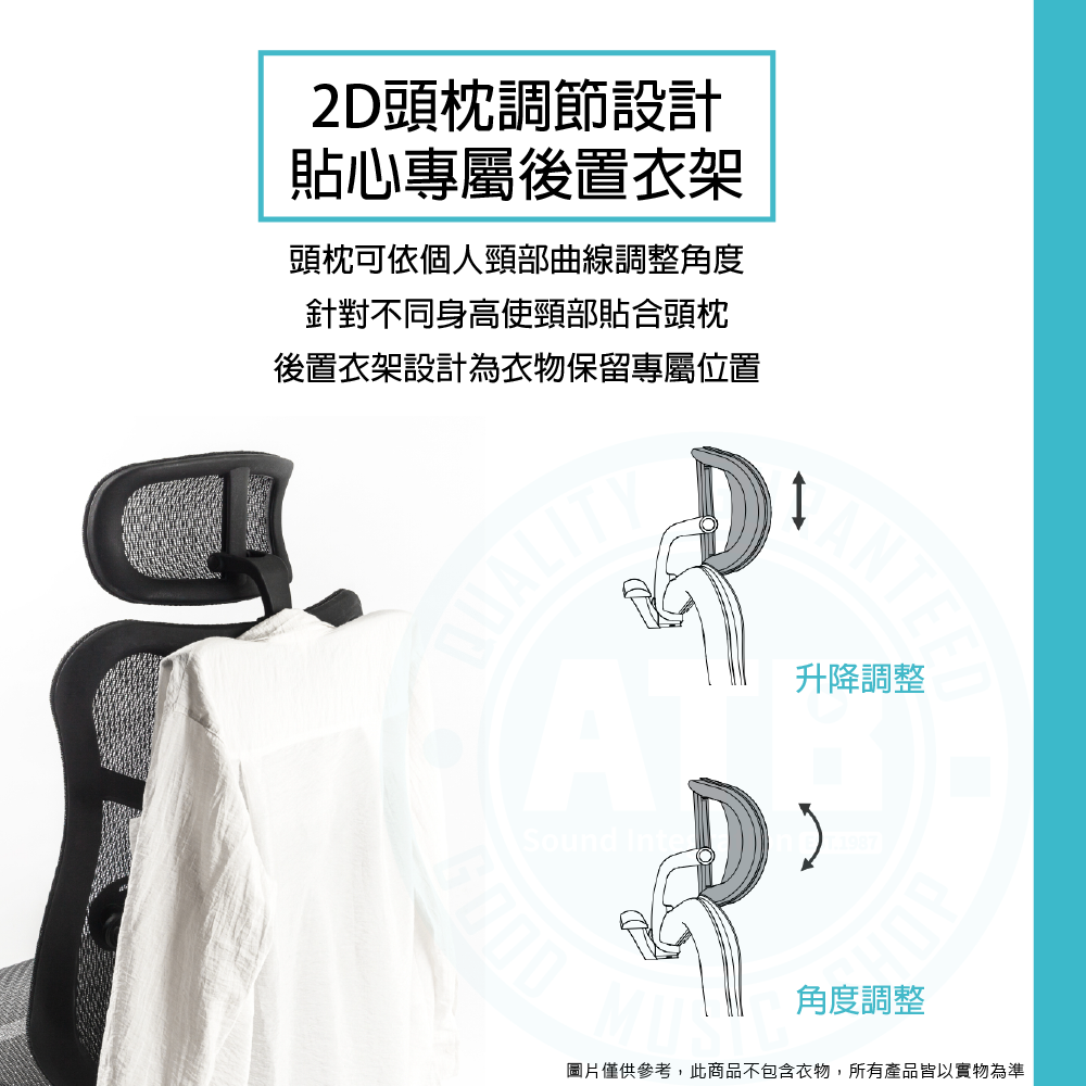 ◆頭枕可升降、角度調整,具專屬後置衣架