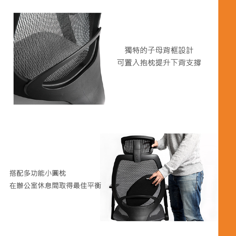 ◆ 捨棄結構型腰靠,採用特殊工學弧度與包覆性支撐