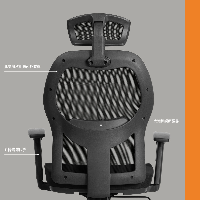 ◆ 椅背的可調節泡棉給予腰部穩定強壯的支撐