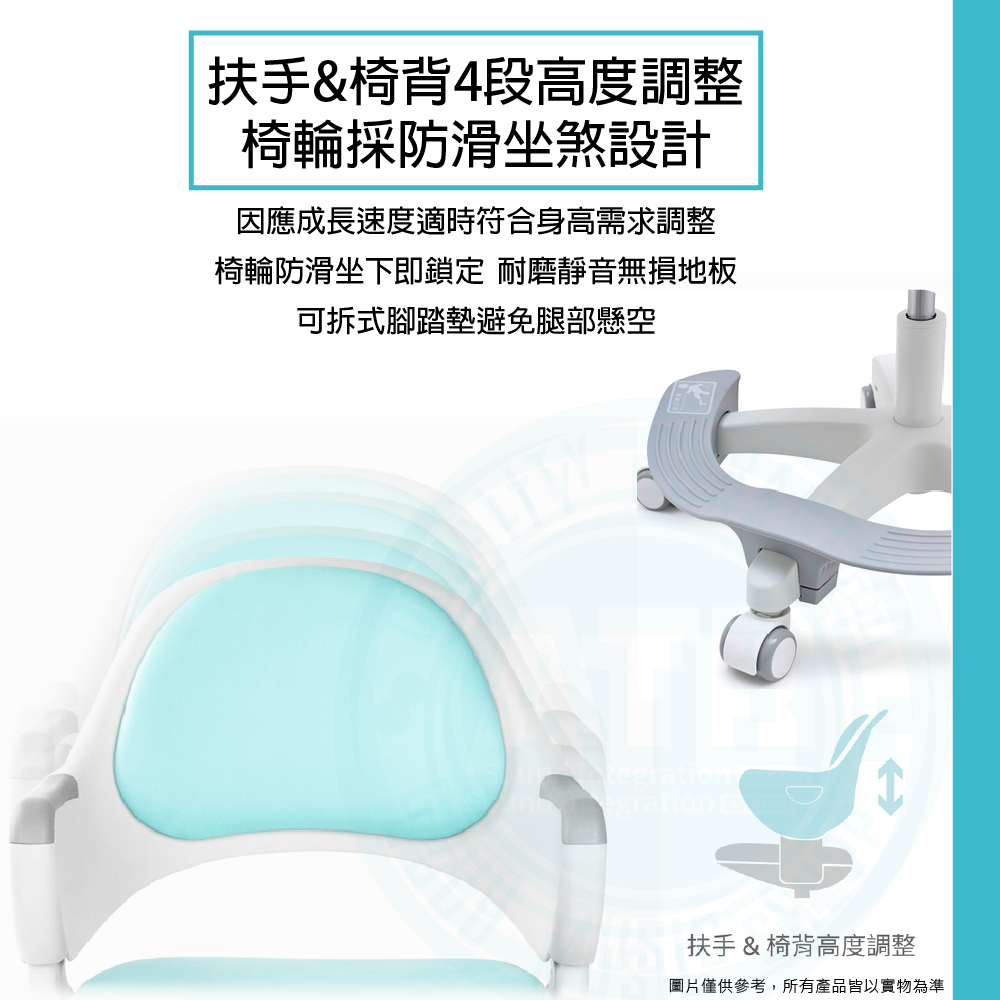 ◆座椅可高度、深度調節,照顧孩童正確坐姿