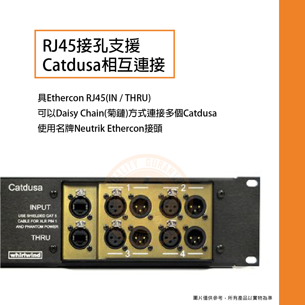 ◆ RJ45(IN / THRU) 可以菊花鏈方式連接多個Catdusa
