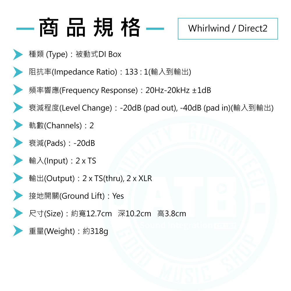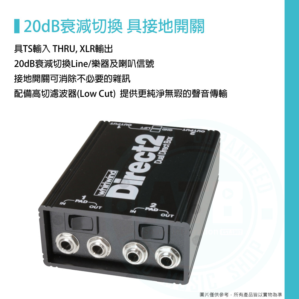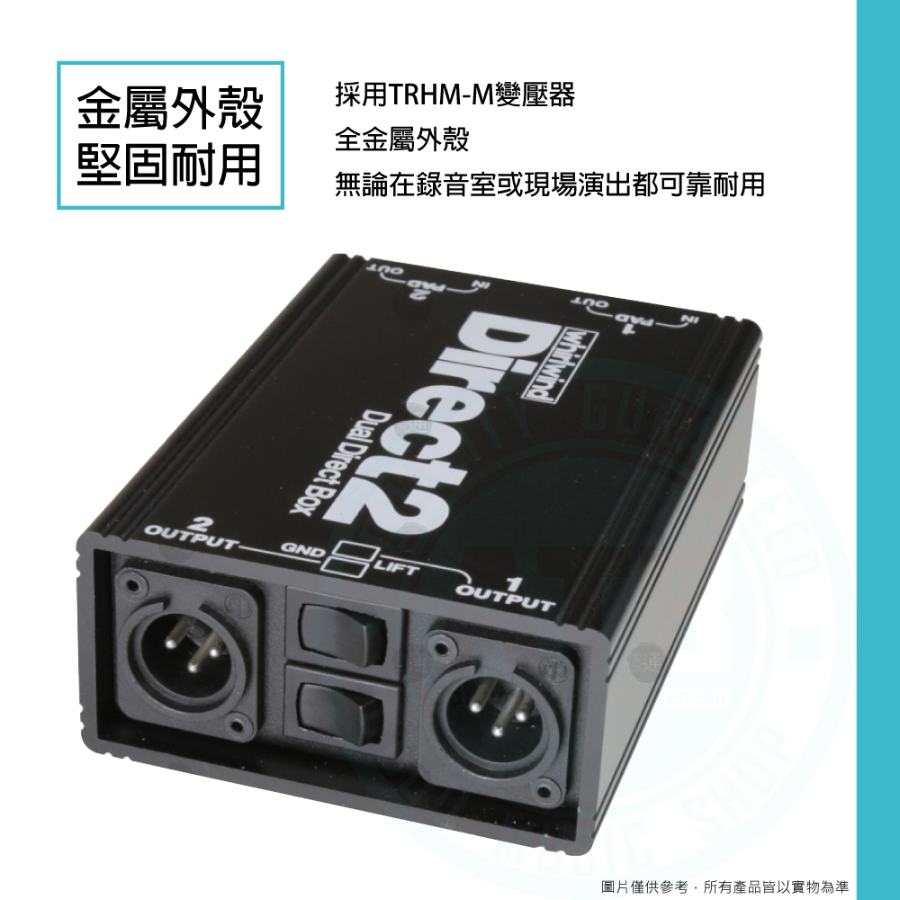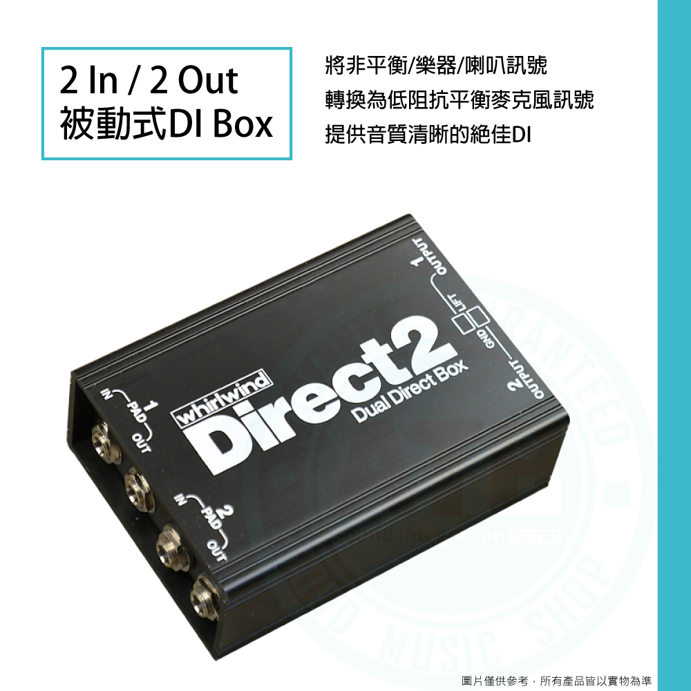 ◆ 2 In / 2 Out被動式DI,將非平衡/樂器/喇叭訊號轉換為低阻抗平衡麥克風訊號