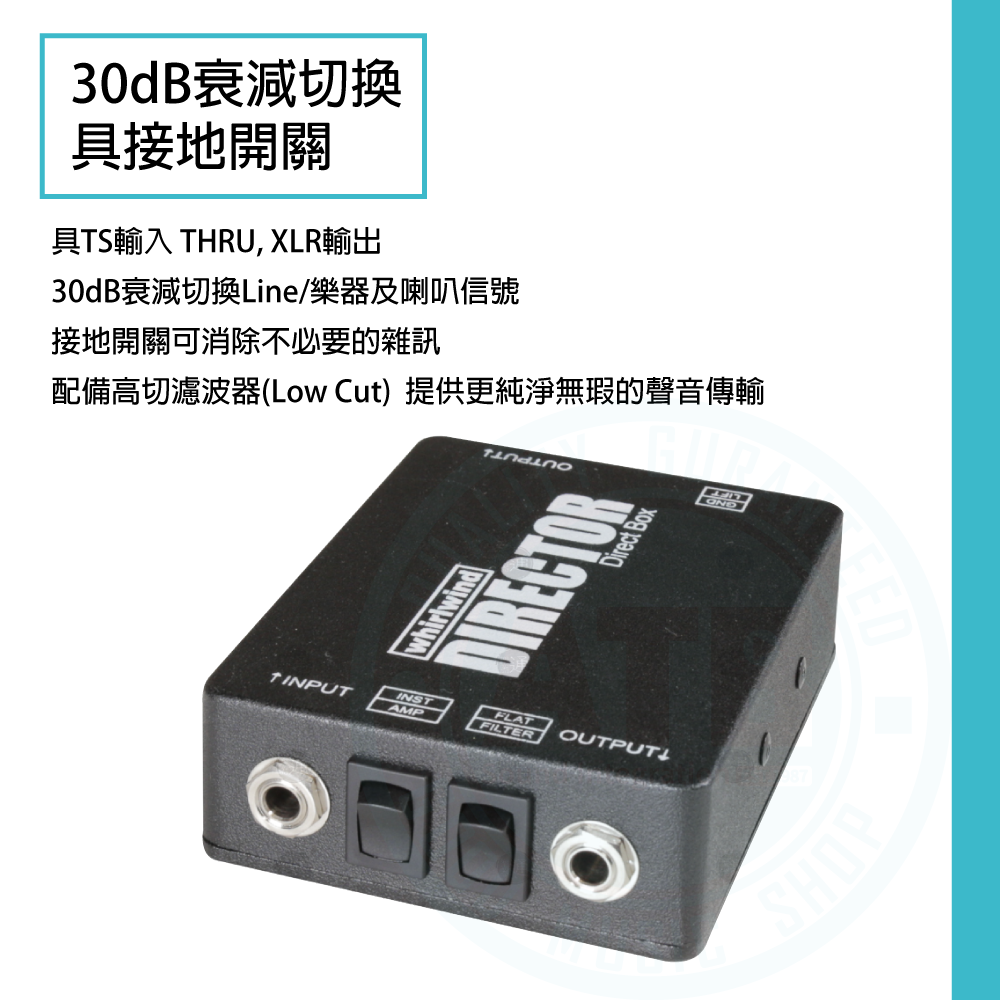 ◆ 1 In / 2 Out被動式DI,將非平衡/樂器/喇叭訊號轉換為低阻抗平衡麥克風訊號