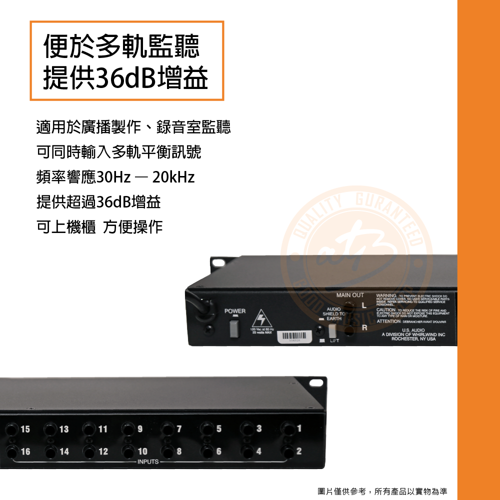 ◆ 適用於廣播製作、錄音室監聽,可同時輸入多軌平衡訊號