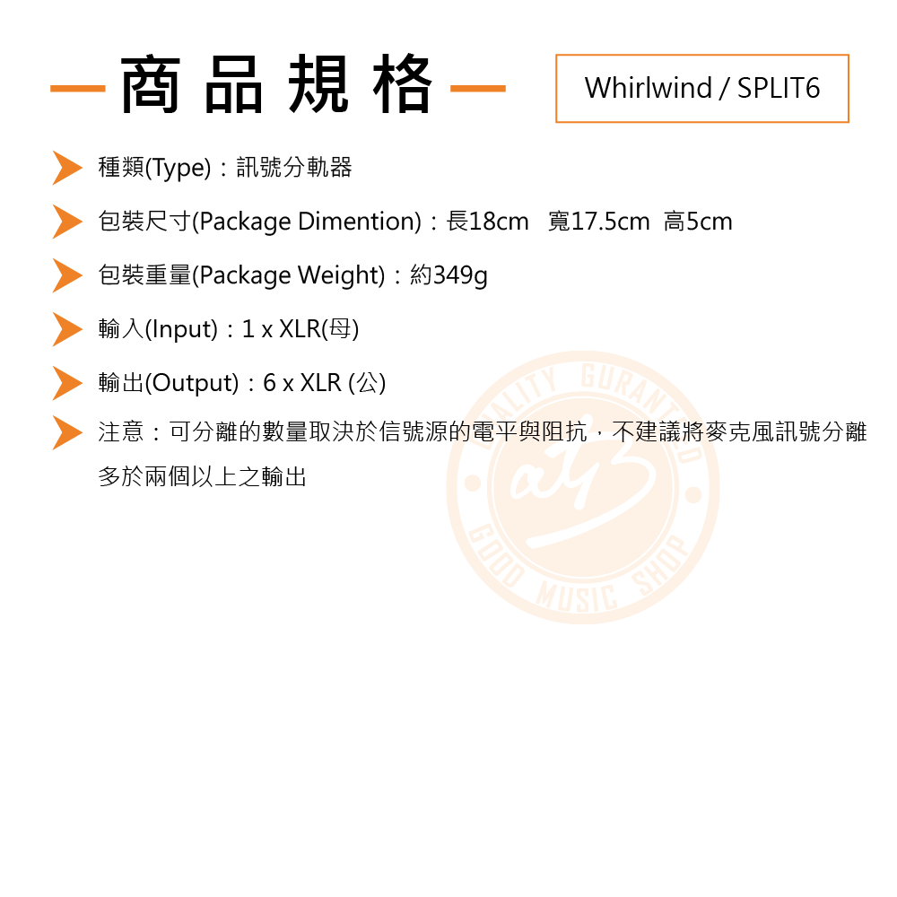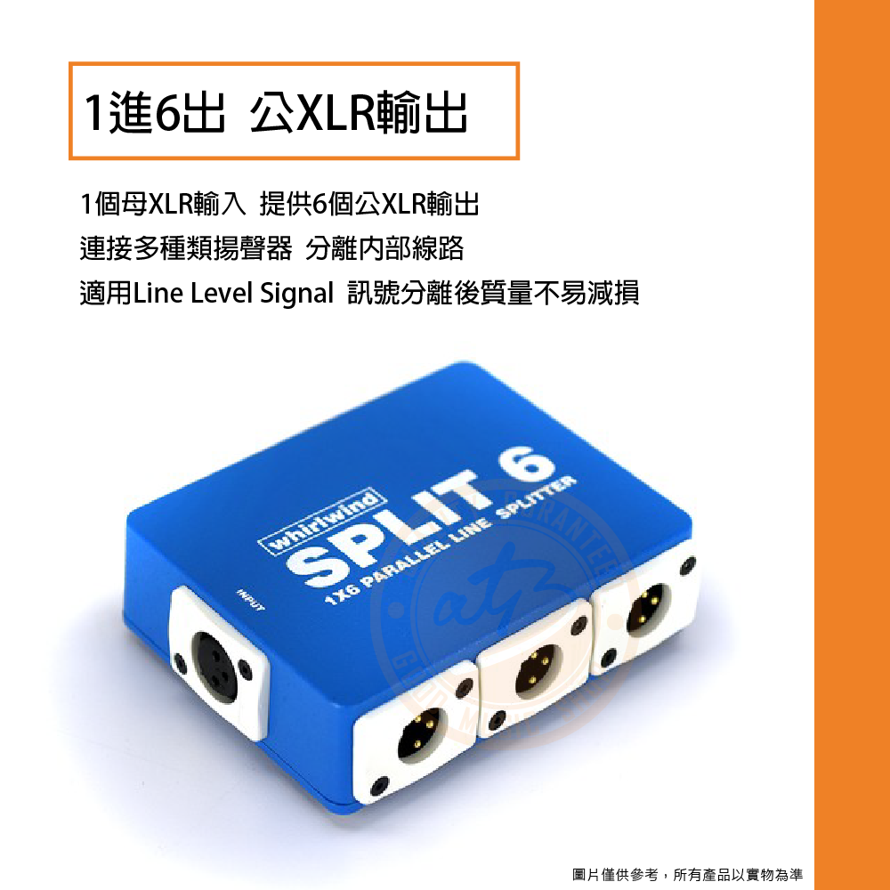 ◆ 1個母XLR輸入 提供6個公XLR輸出