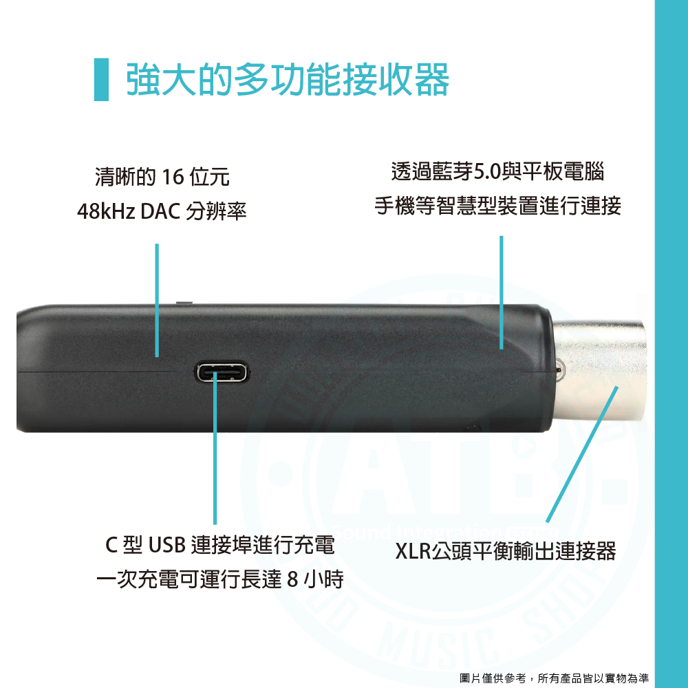 ◆適用於主動式 PA 揚聲器系統的藍牙音訊接收器