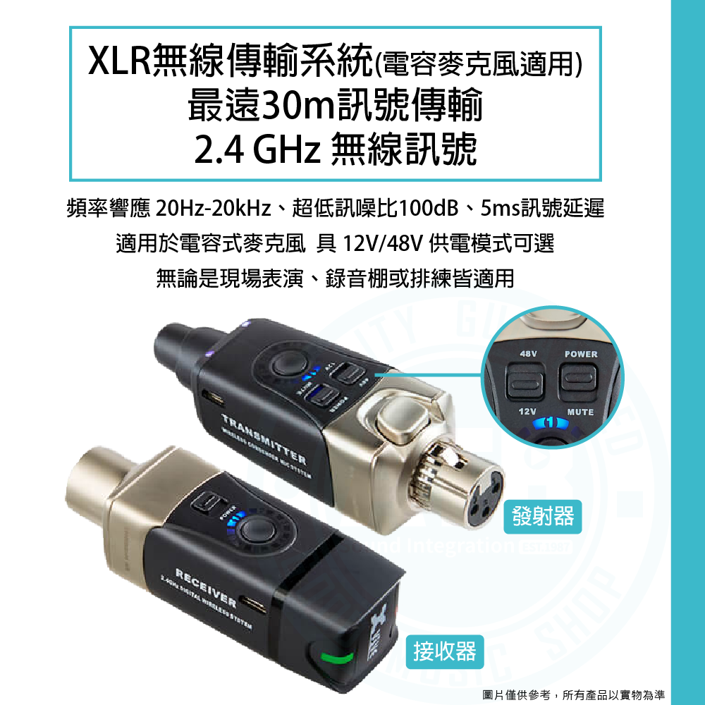 ◆ 無線傳輸系統(電容麥克風適用),具XLR接頭