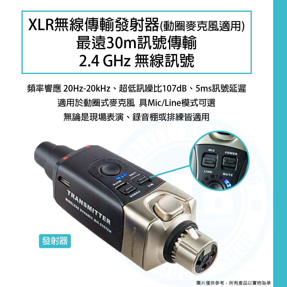 ◆ 無線傳輸發射器(動圈麥克風適用),具XLR接頭