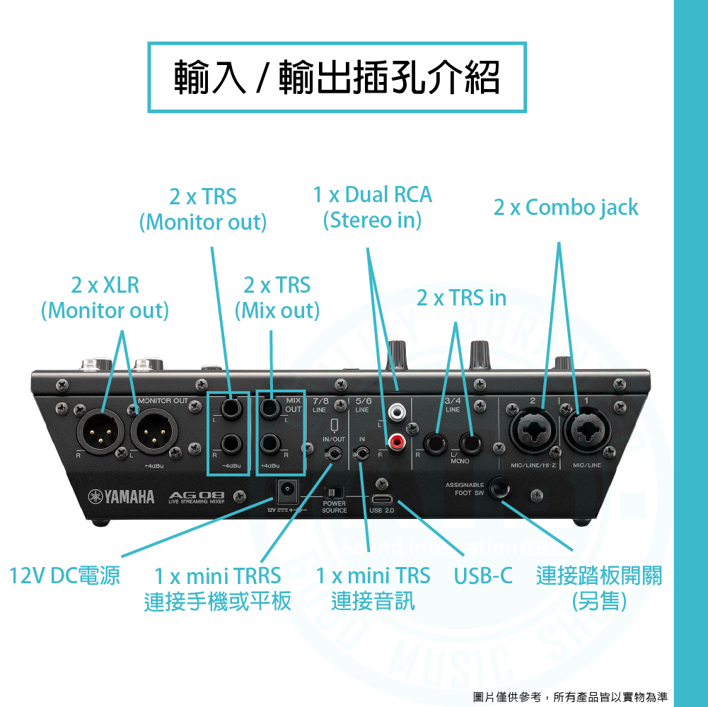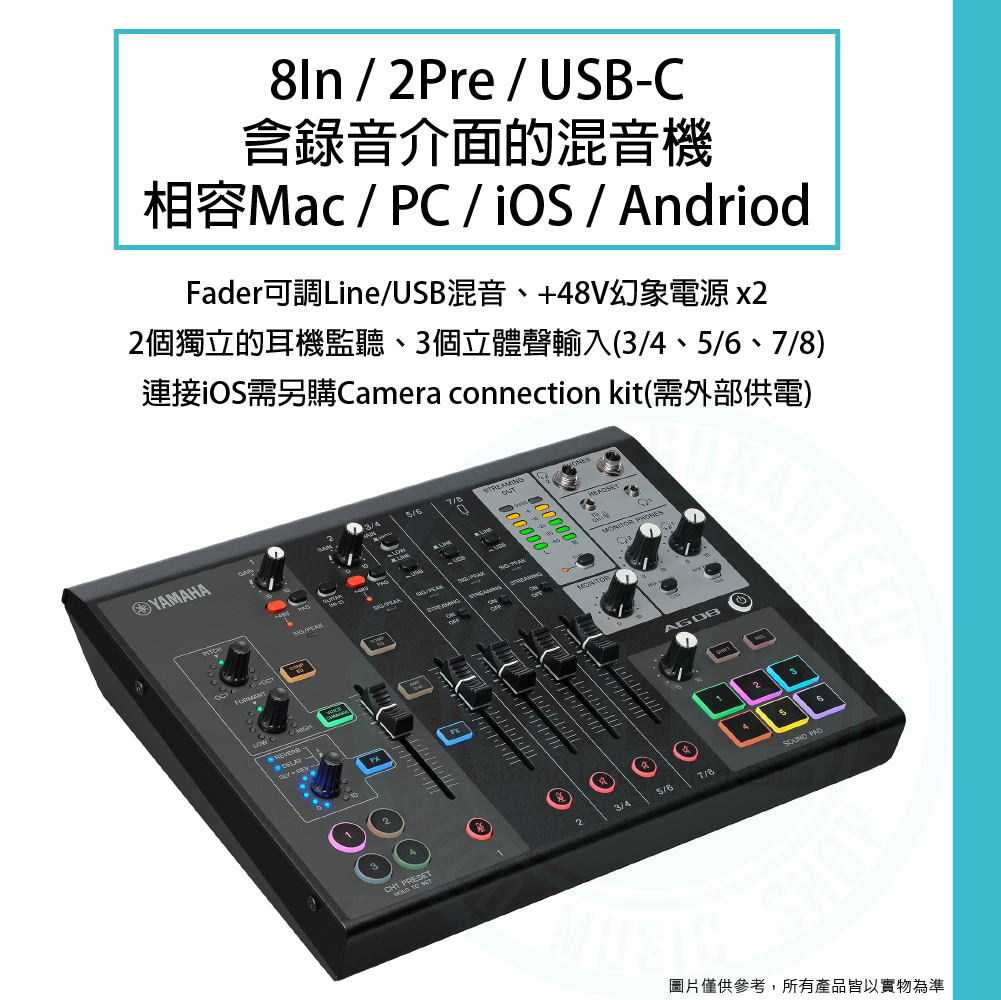 ◆ 8In / 2Pre / USB-C,含錄音介面的混音機
