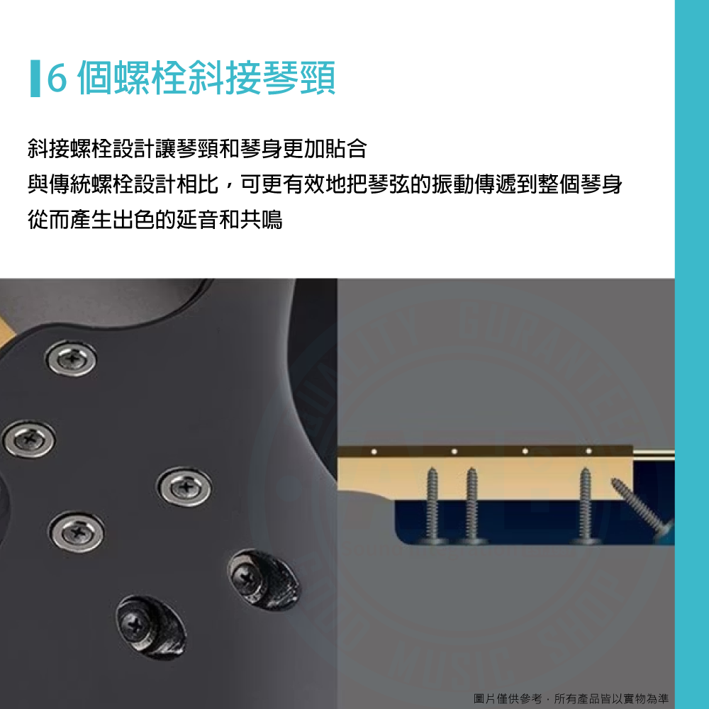 ◆六螺栓接合技術穩固連結琴頸與琴身