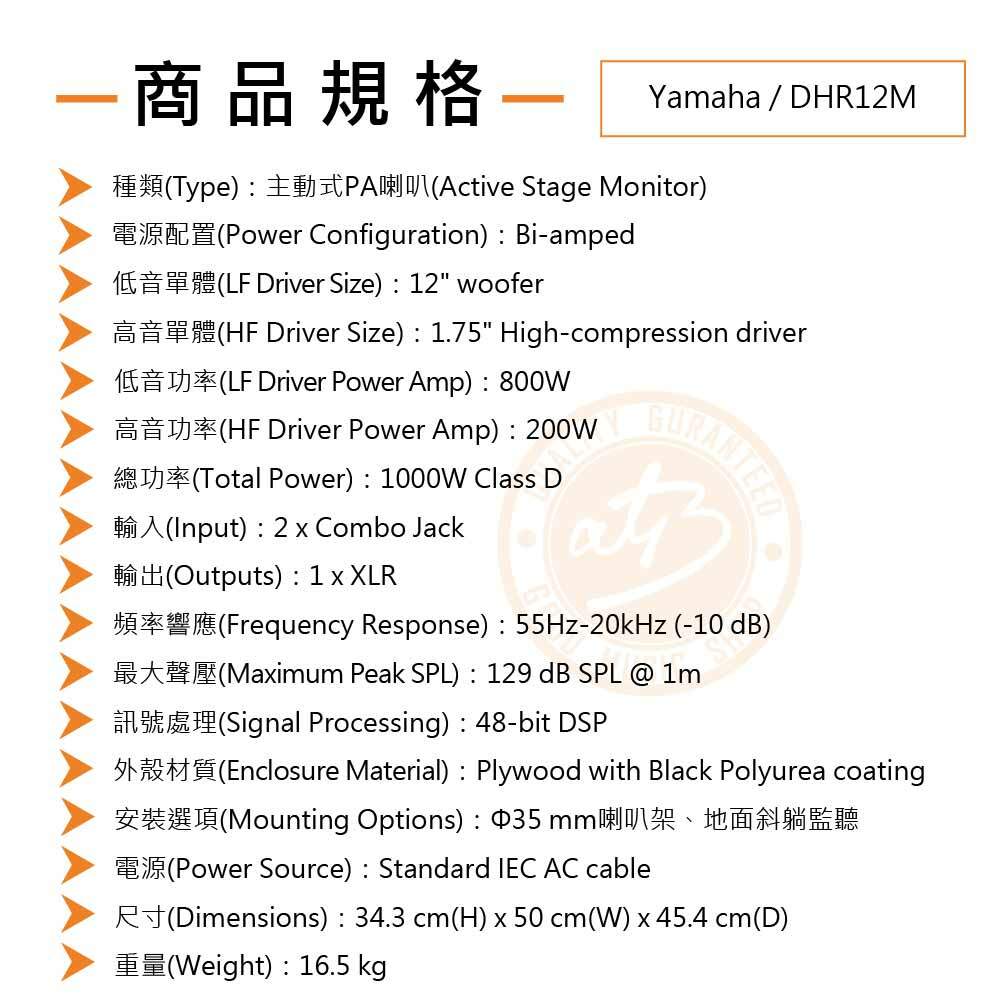 ◆ 12吋低音單體、D類放大、總功率1000W、2 x Combo Jack
