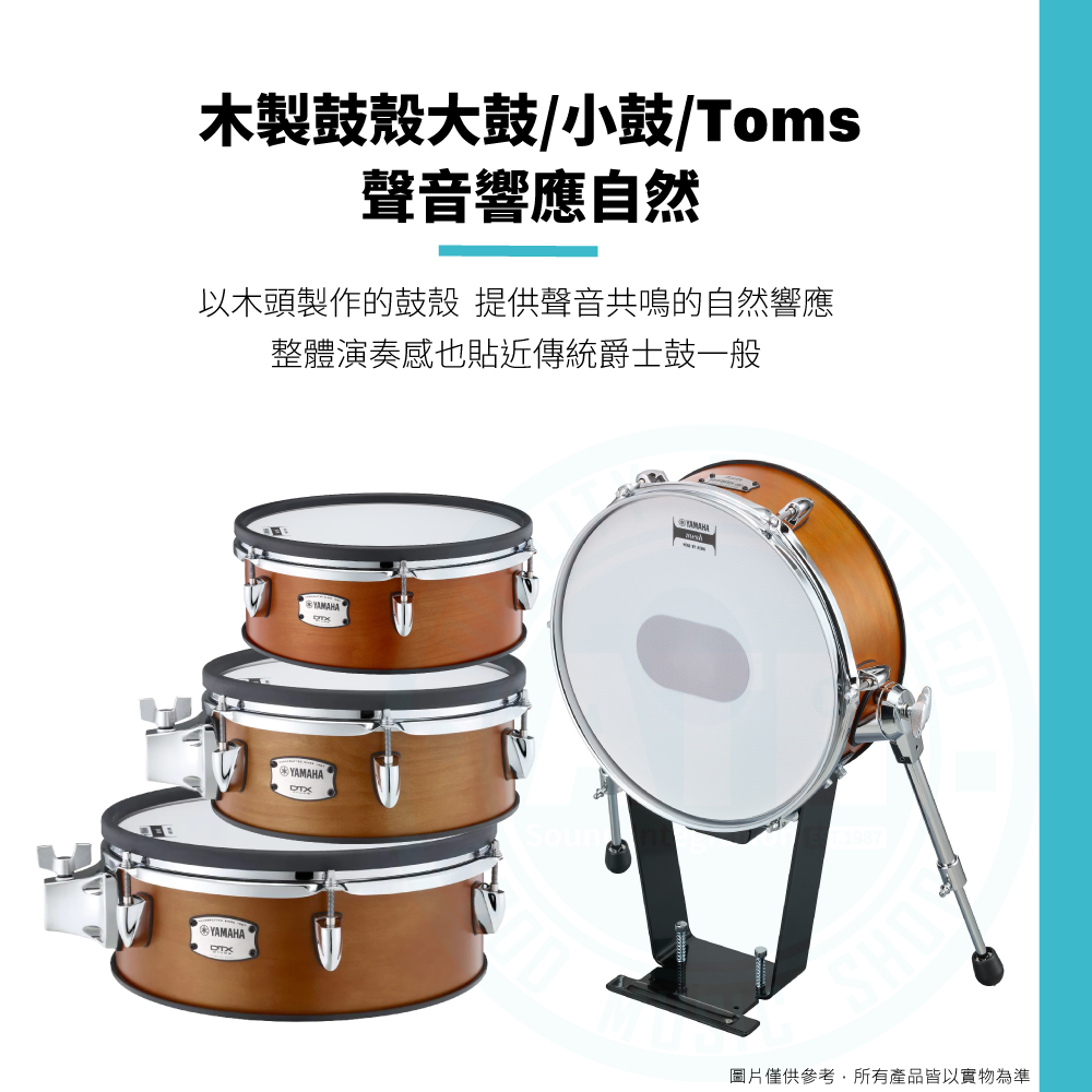 ◆ 仿真Hi-hat架、仿真木製鼓殼大鼓、小鼓、Toms,聲音響應自然