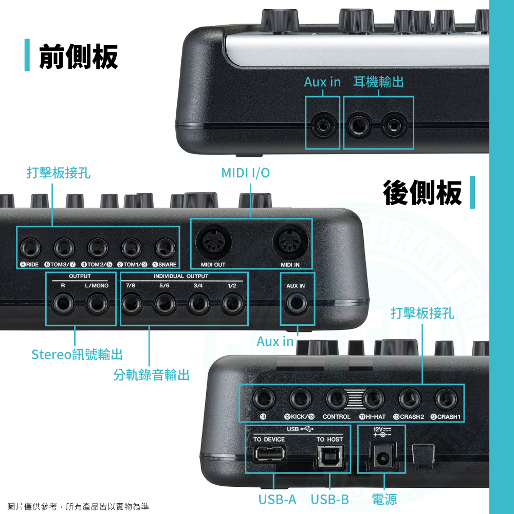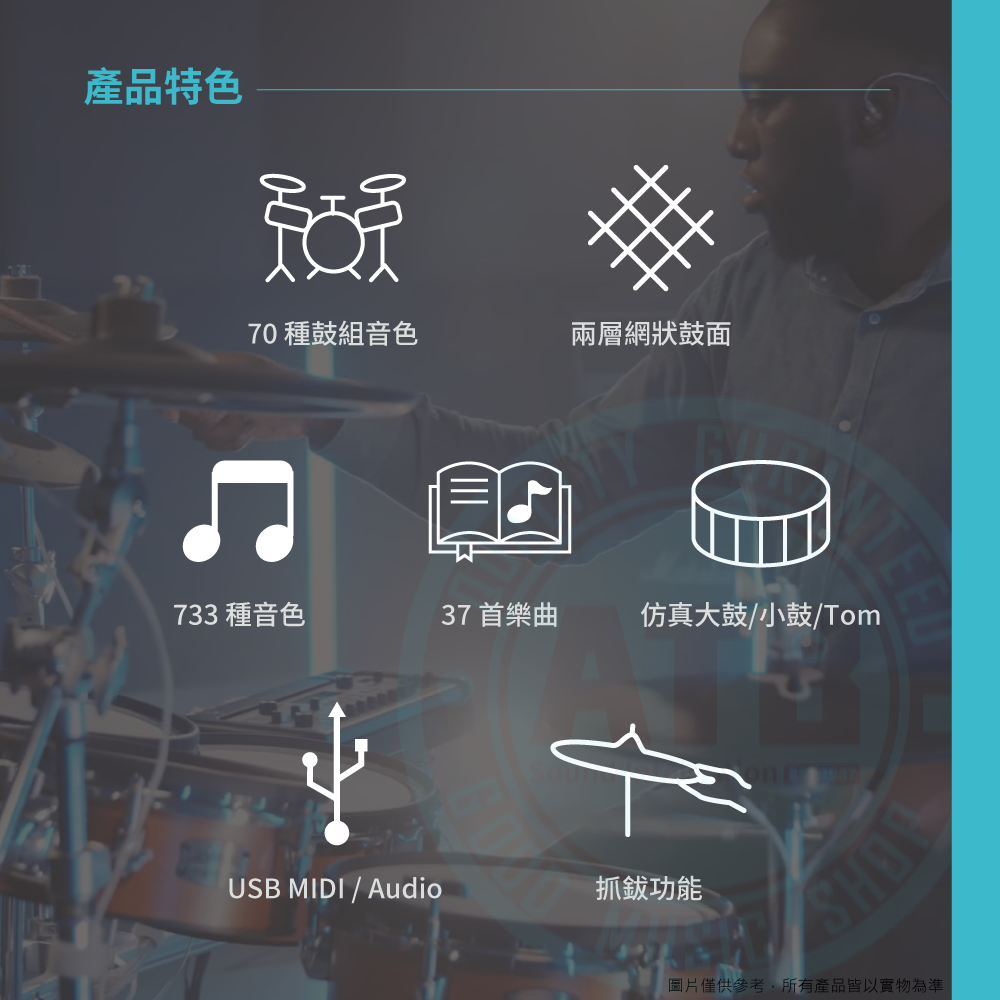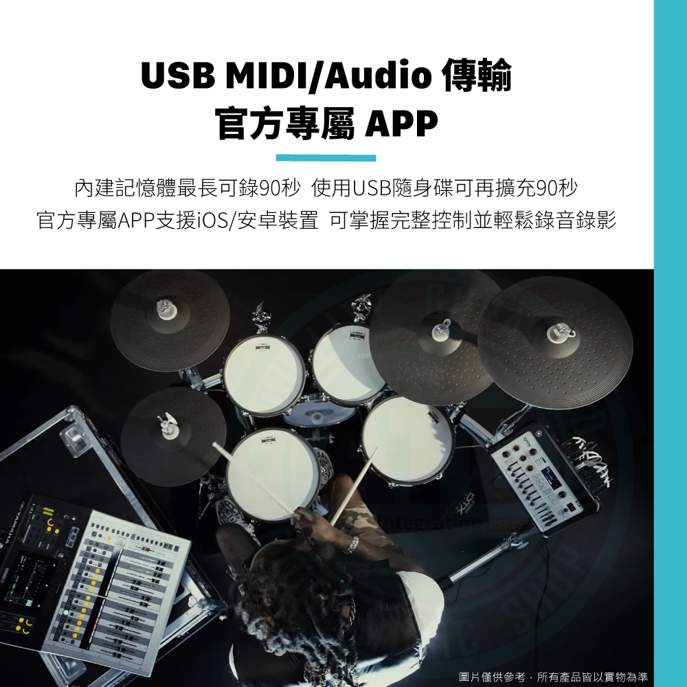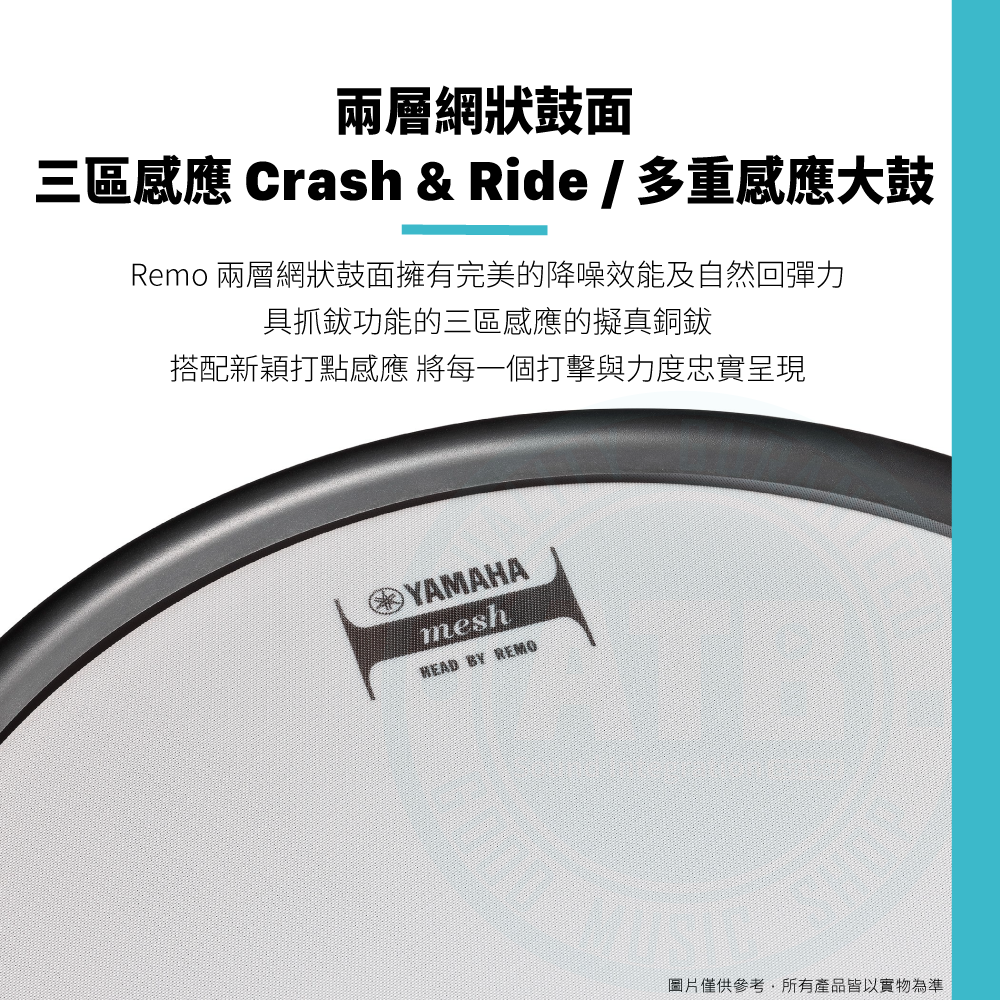 ◆ 兩層網狀鼓面、三區感應Crash & Ride、多重感應大鼓