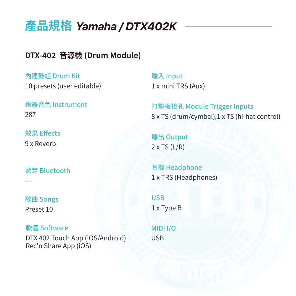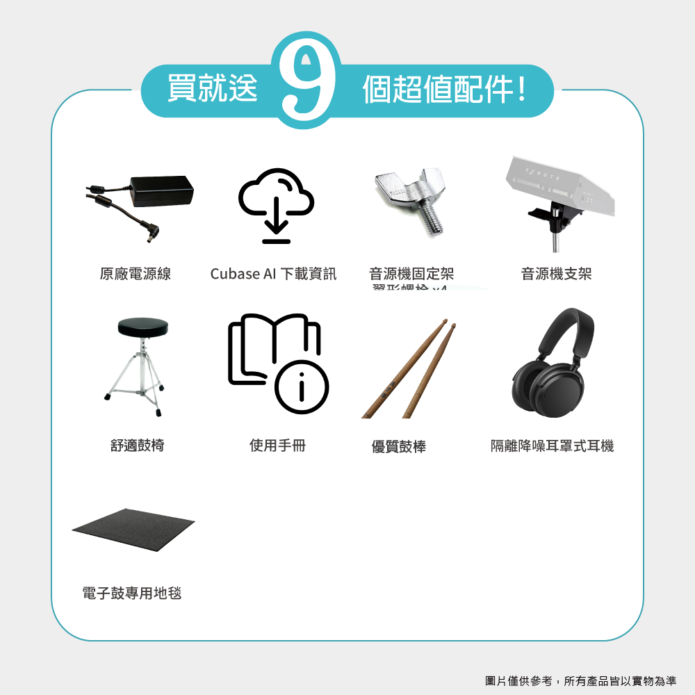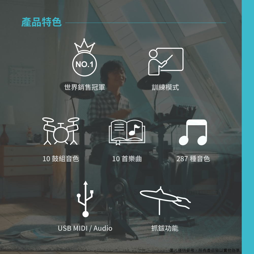 ◆擁有十組預設鼓組音色,十組練習模式協助提升技巧