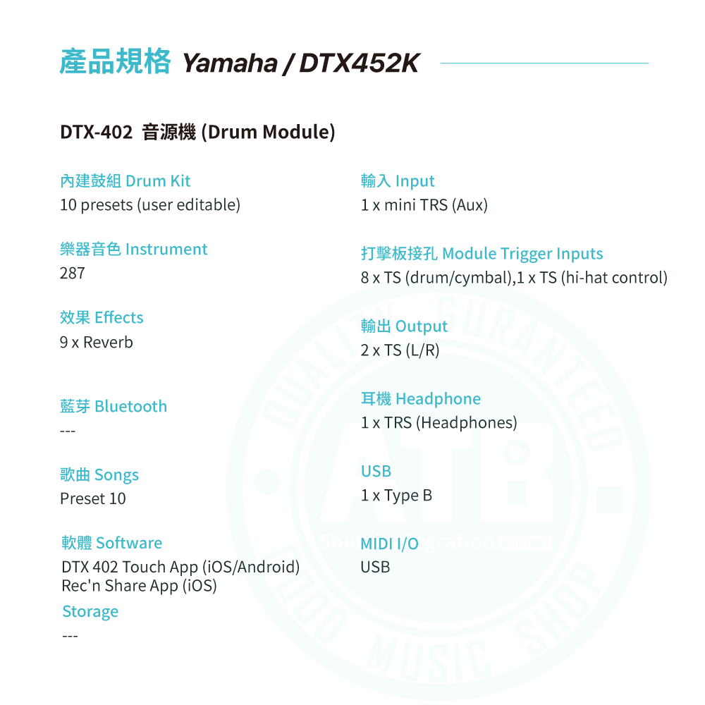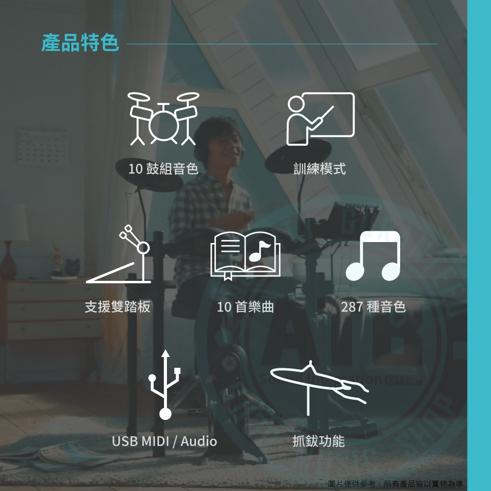 ◆擁有十組預設鼓組音色、十組練習模式
