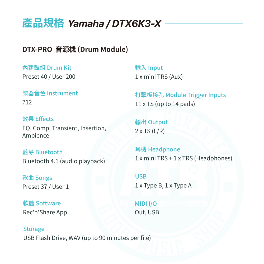 ◆ DTX-PRO音源機:40鼓組/712音色/37歌曲