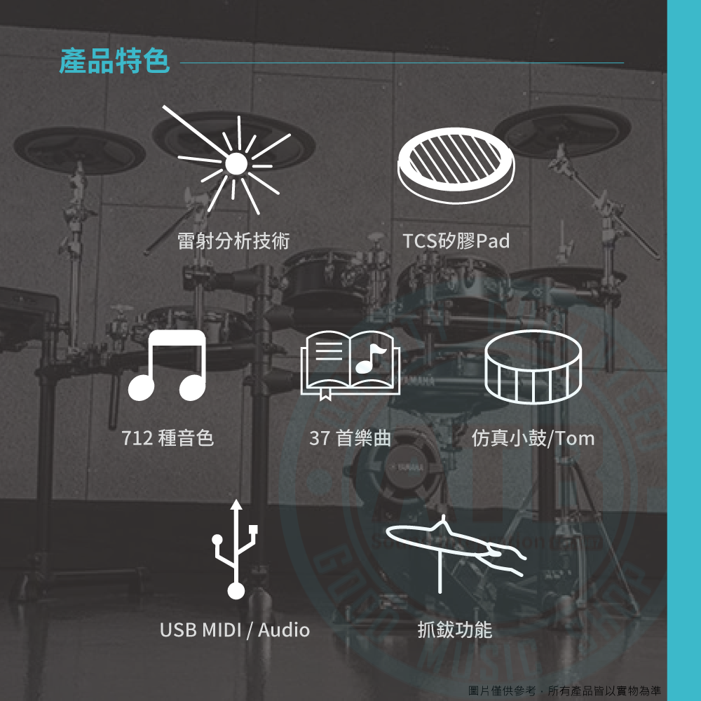 ◆ TCS矽膠鼓面、三區感應Crash & Ride、多重感應大鼓