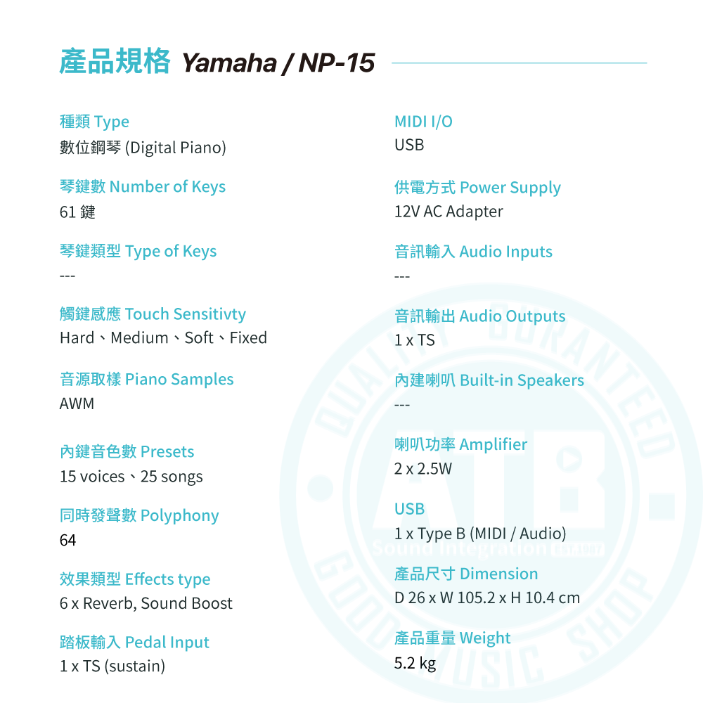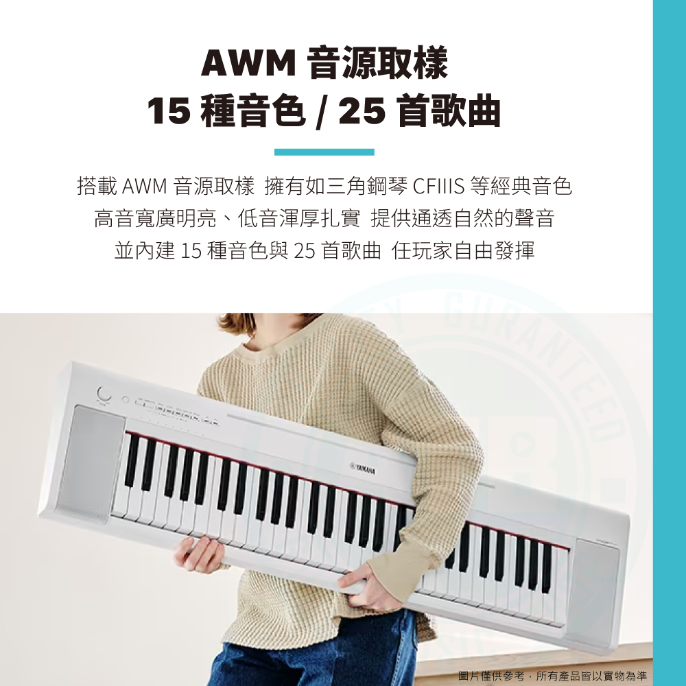 ◆ 搭載 AWM 音源取樣,擁有 15 種音色 / 25首歌曲