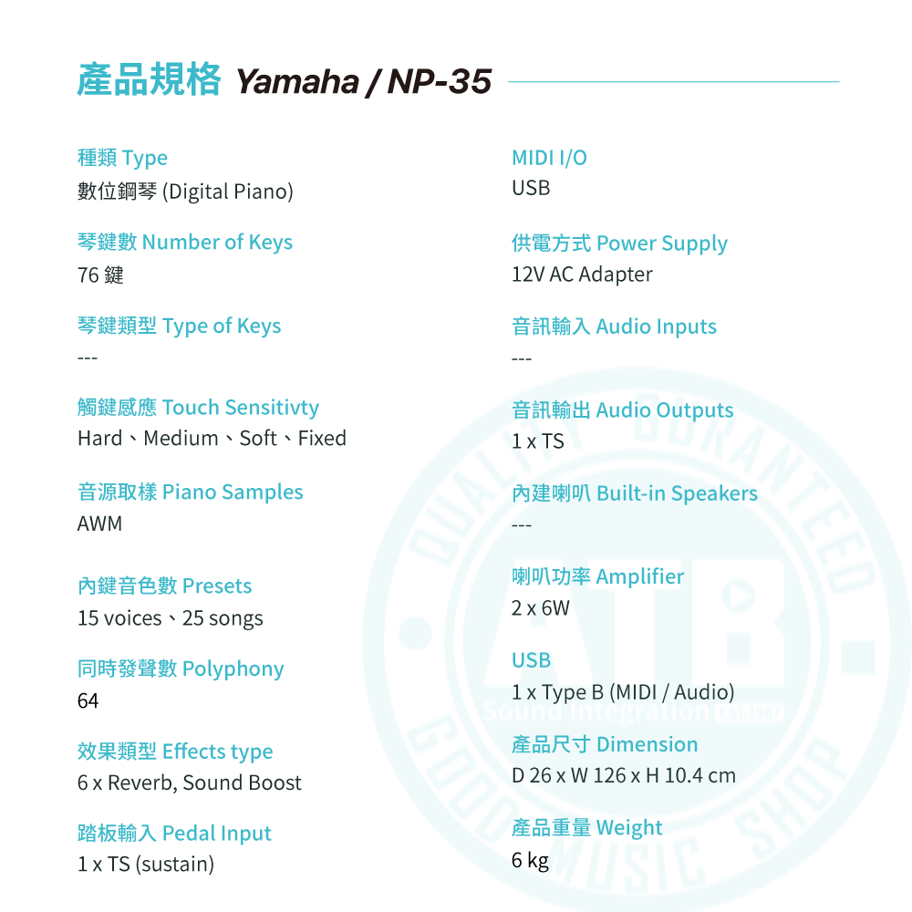 ◆ USB MIDI/Audio,內建喇叭 6W x2