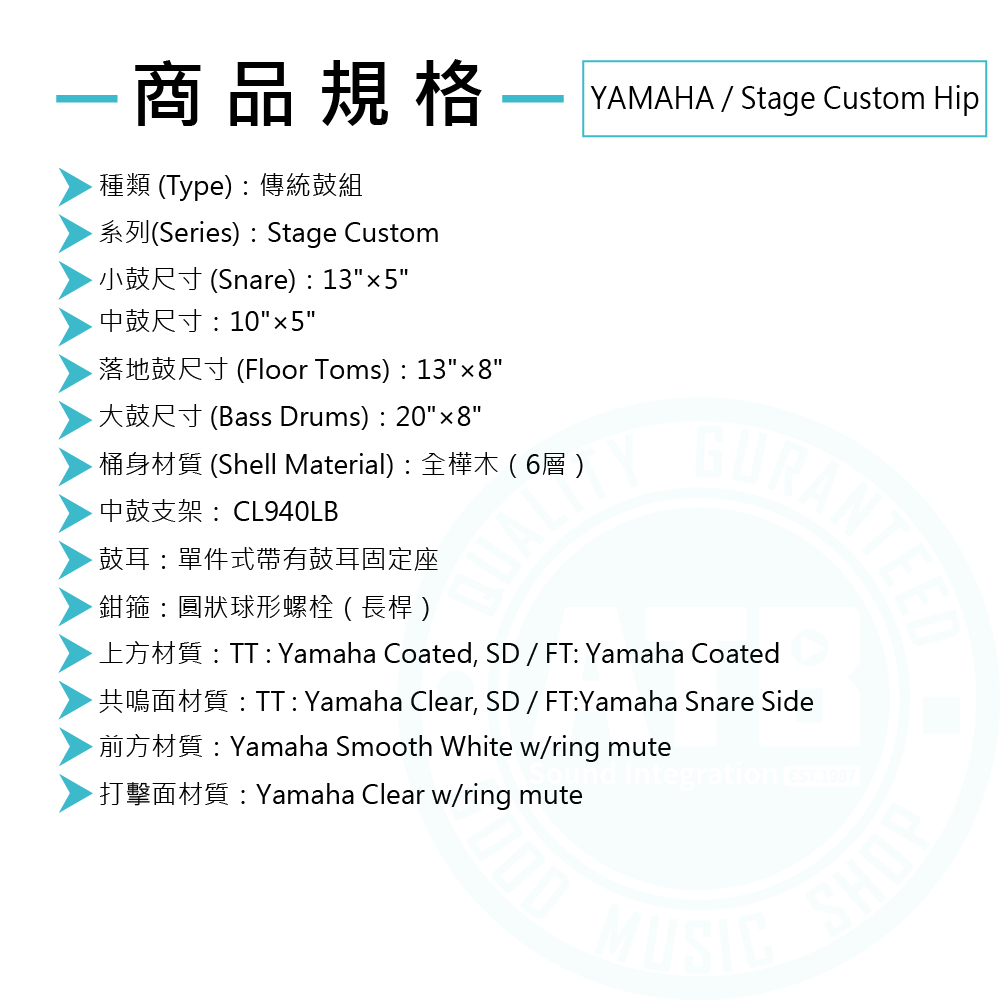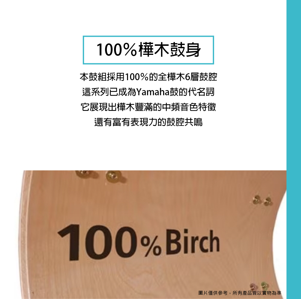 ◆ 本鼓組採用100%的全樺木6層鼓腔
