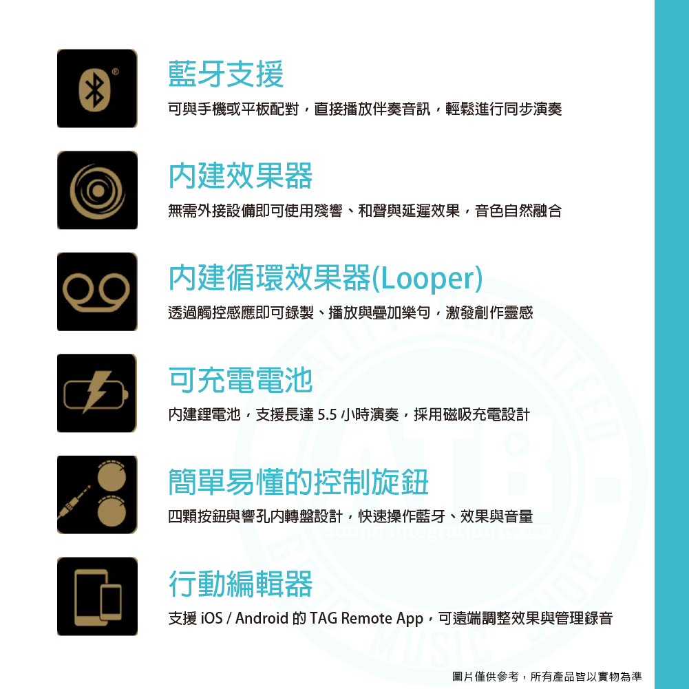 ◆ 支援藍牙與循環錄音 一把吉他即可完成創作與演出