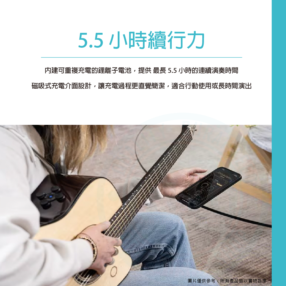 ◆ 可充電鋰電池與磁吸設計 最長可演奏 5.5 小時