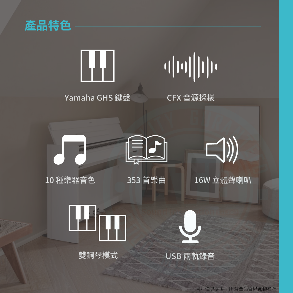 ◆ 10音色 / 353樂曲,可使用Smart Pianist APP切換音色