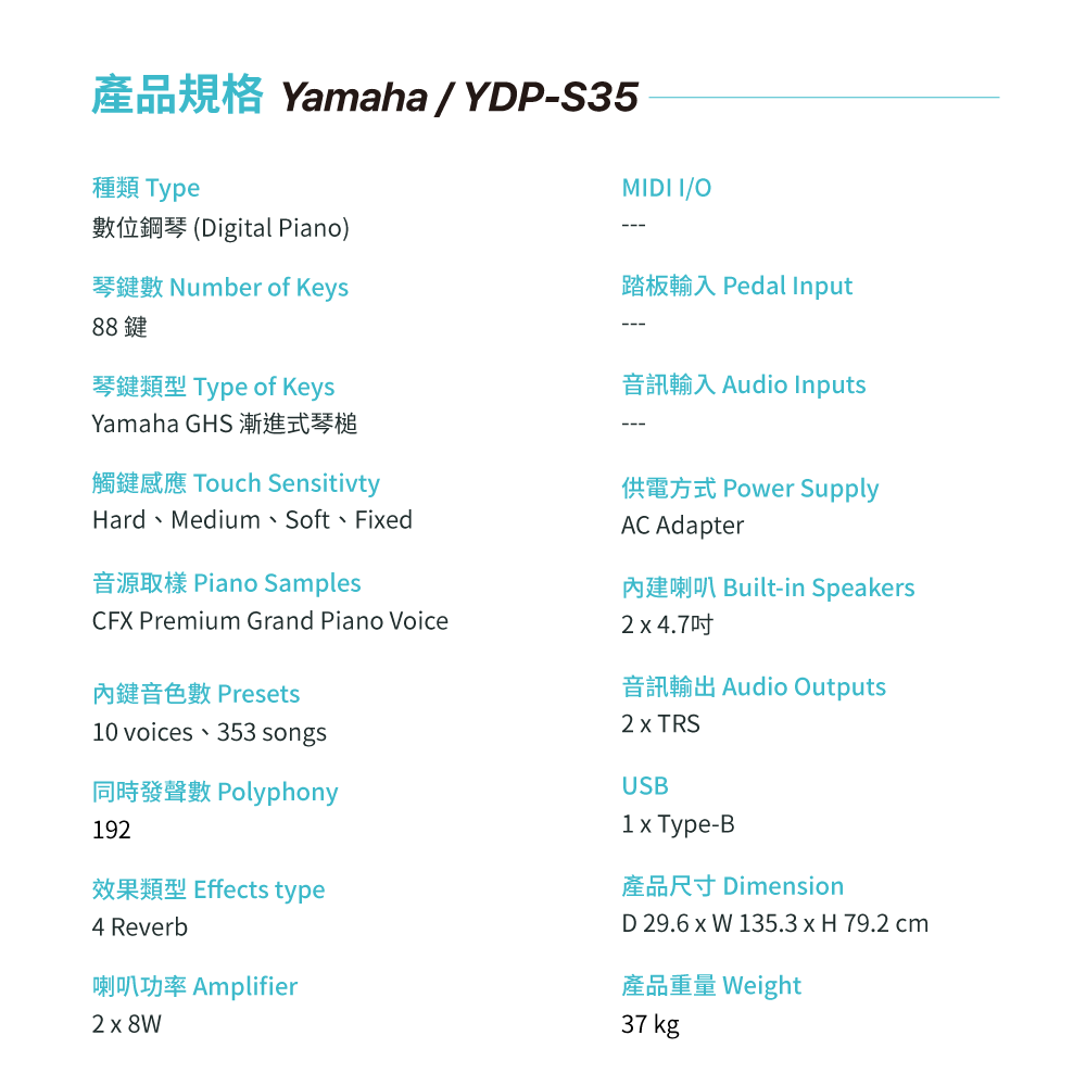 ◆ 搭載8W x2 立體聲喇叭,具雙鋼琴模式與2軌錄音