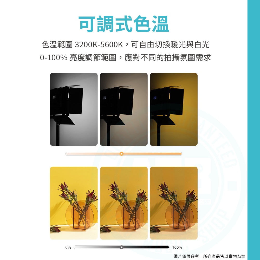 ◆擁有 3200K 至 5600K 可調色溫,可適應不同光線環境