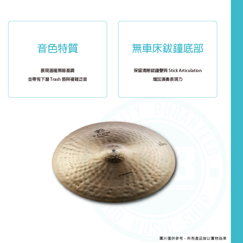 ◆ 無車床鈸鐘底部保留清晰鈸鐘音色與 Stick
