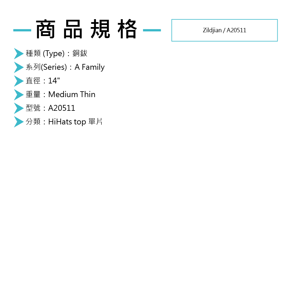 Zildjian / 14" A Custom HiHats 銅鈸 (A20511)