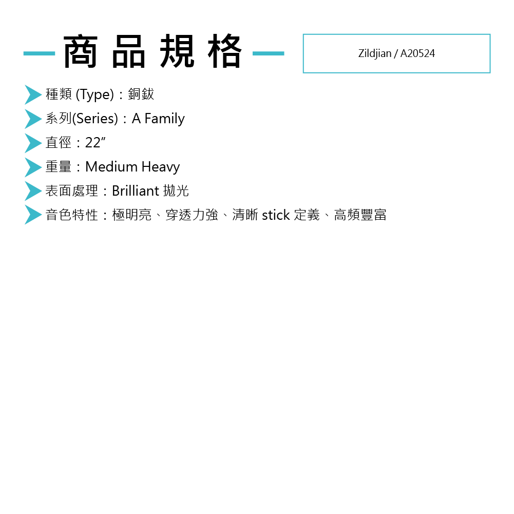 Zildjian / 22" A Custom Ping Ride 銅鈸 (A20524)
