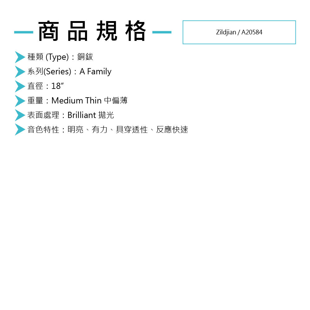 Zildjian / 18" A Custom Projection Crash 銅鈸 (A20584)