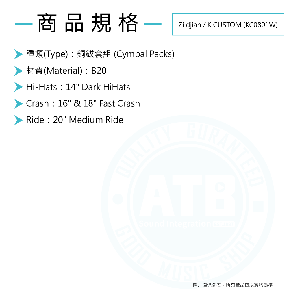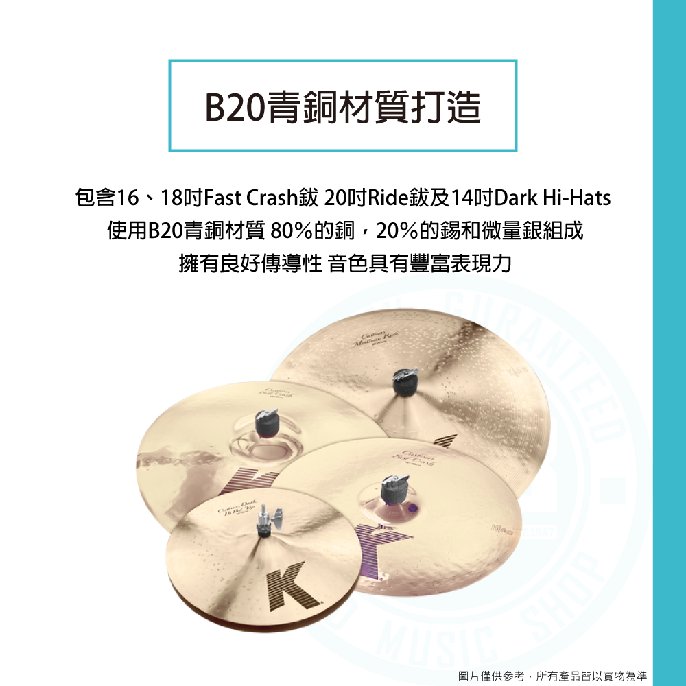◆包含14吋Dark HiHats、16&18吋Fast Crash、20吋Medium Ride