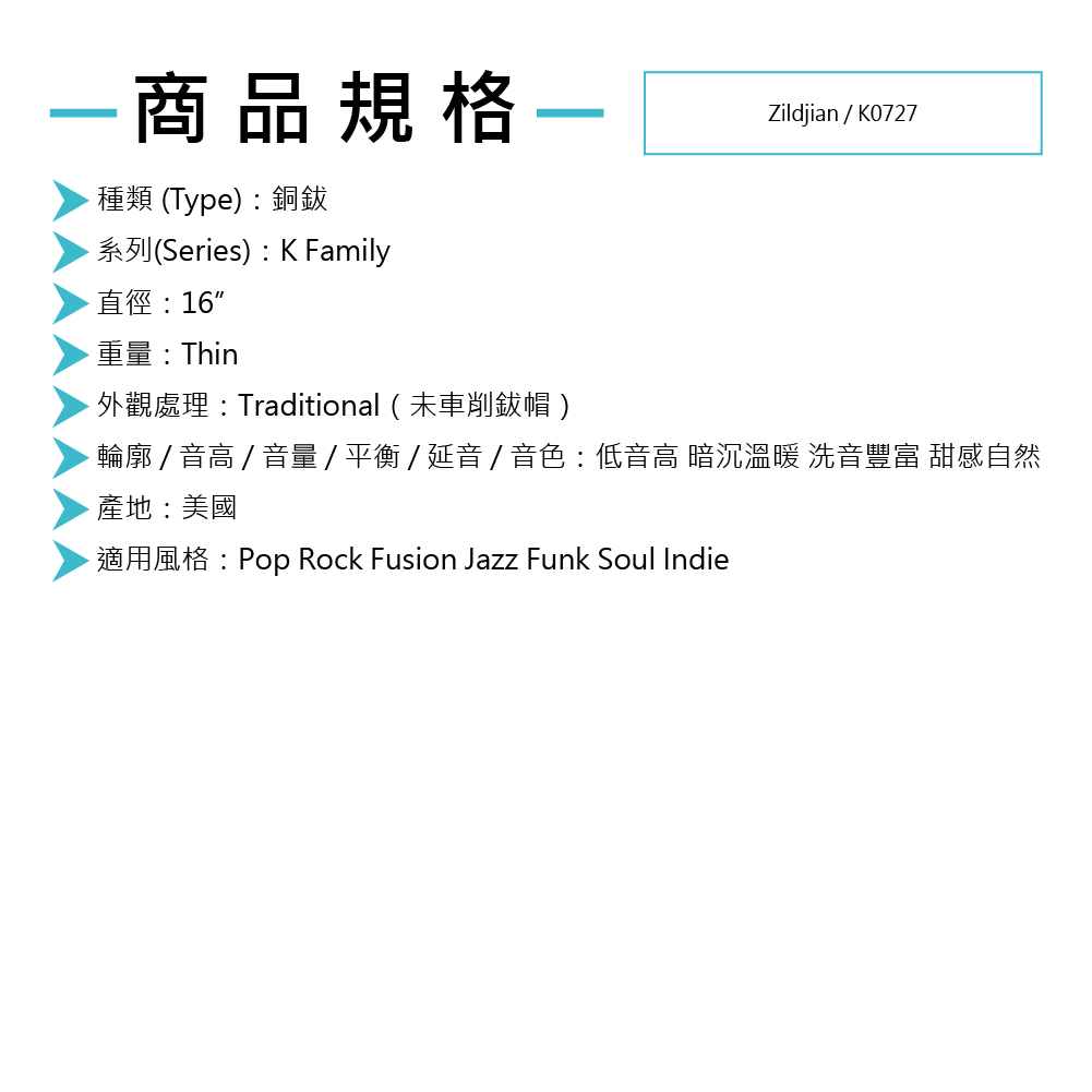 Zildjian / 16” K Sweet HiHats 銅鈸 (K0727)