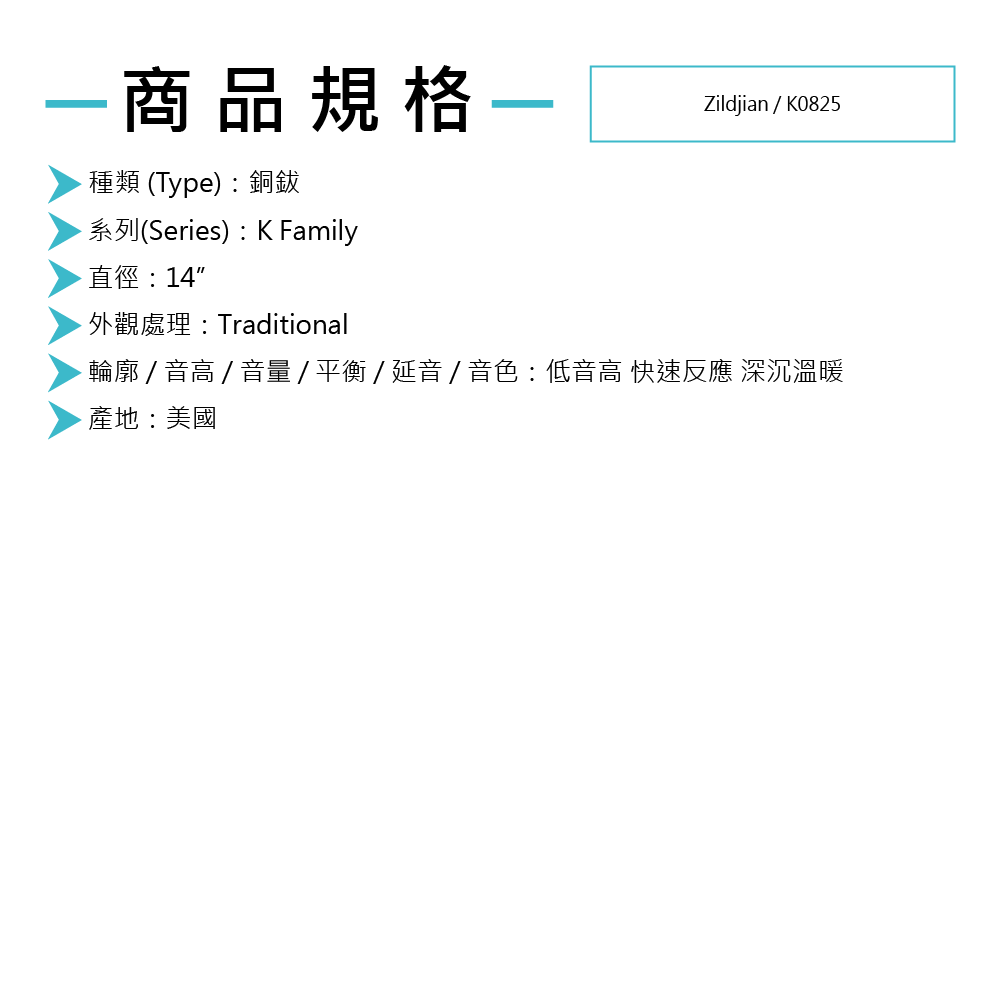 Zildjian / 14” K HiHats 銅鈸 (K0825)