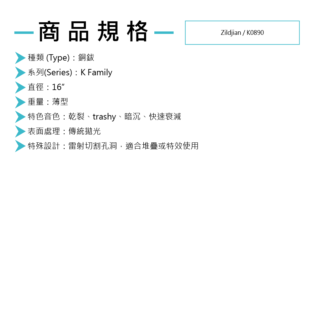 Zildjian / 16" K EFX 銅鈸 (K0890)