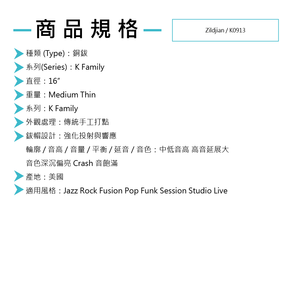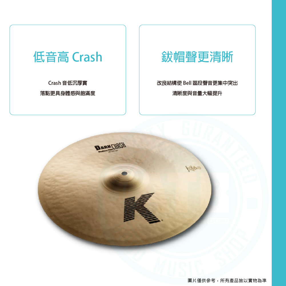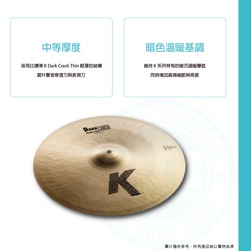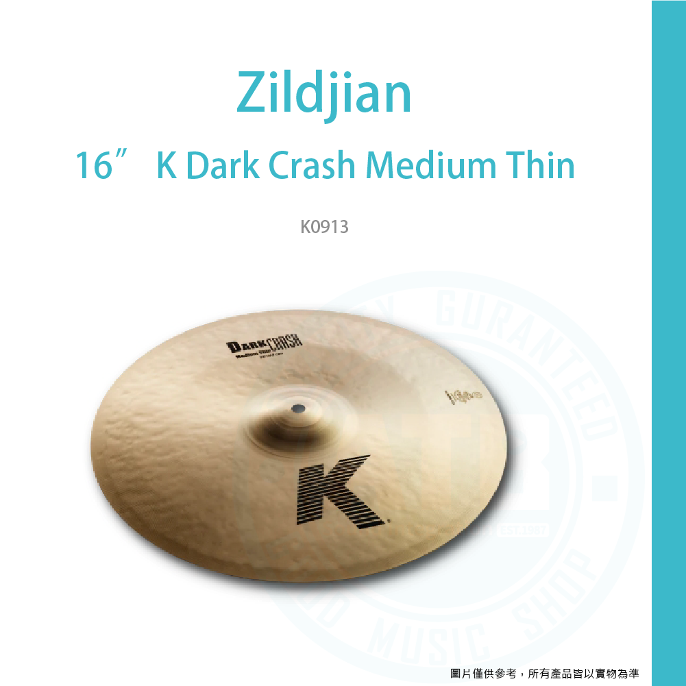 Zildjian / 16” K Dark Crash Medium Thin 銅鈸 (K0913)
