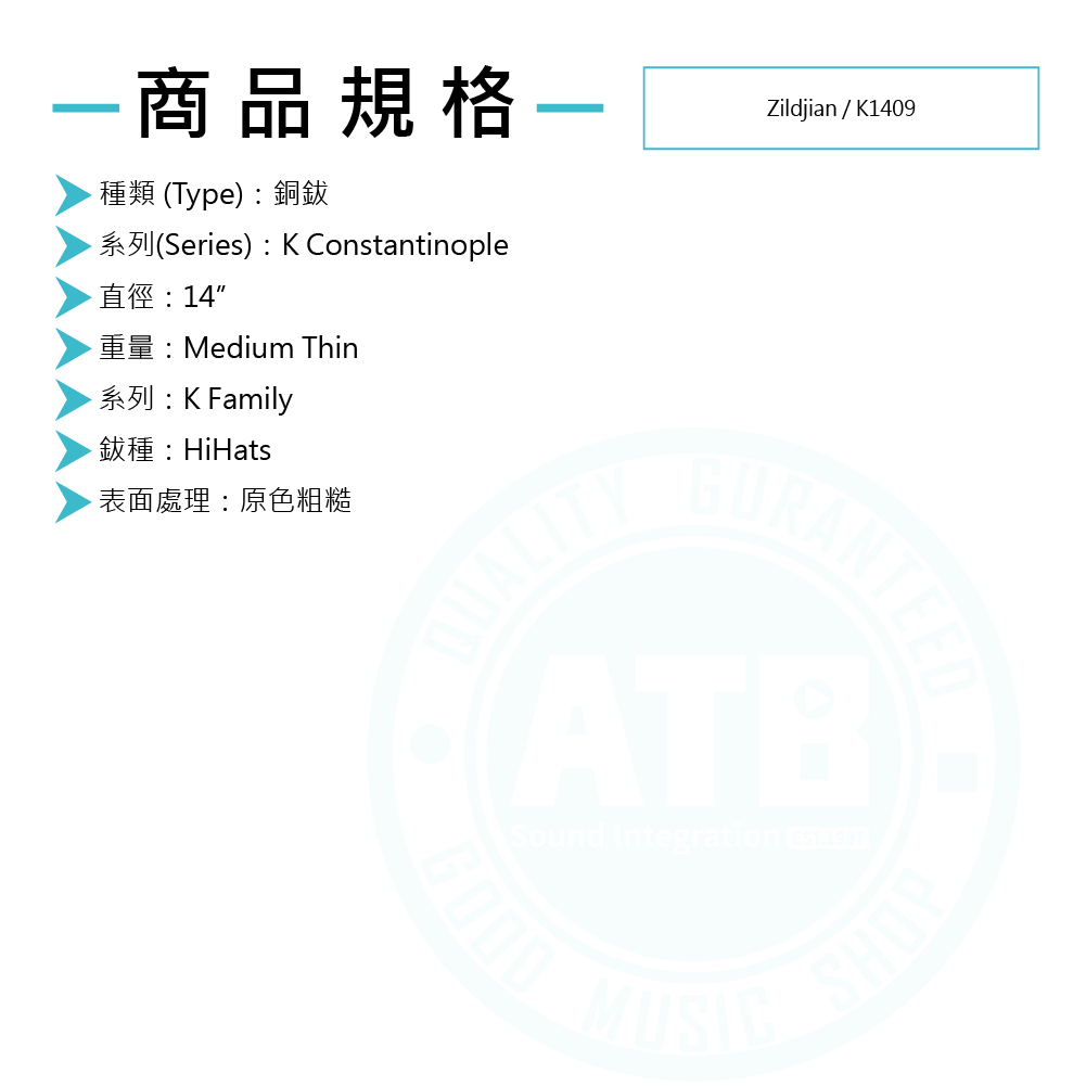 Zildjian / 14” K Custom Special Dry HiHats 銅鈸 (K1409)